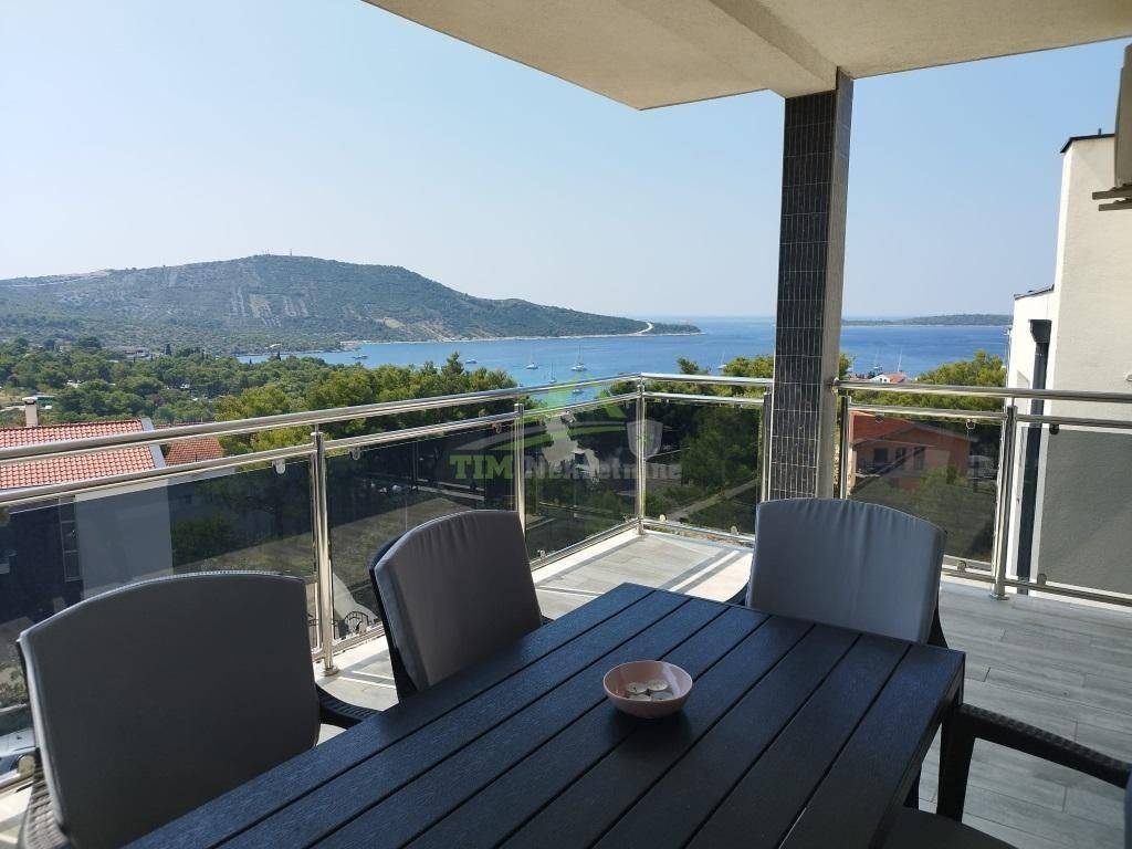 Trosobni stan na 2.katu stambene zgrade; površine 76.38 m2; sa prekrasnim pogledom na more te Primošten.Zgrada se sastoji od prizemlja i dva kata; ukupno 6 stanova; nalazi se na uzvišenom  i mirnom dijelu Primoštena pogodnim kako za cjelogodišnji život tako i za sezonski boravak.