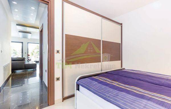 Kuća je građena vrhunskim materijalima za gradnju te završno uređenje; fasada je silikonska - debljina termoizolacije iznosi 10 cm; aluminijska stolarija (SCHÜCO); kupaonice su opremljene opremom renomiranih proizvođača (Geberit, Paffoni, Viega, Villeroy & Boch); grijanje i hlađenje (podno + stropno) u svim prostorijama putem dizalica topline (DAIKIN), elektro prekidači, utičnice, termostati vrhunskog proizvođača VIMAR. Fasadni dio objekta, kao i sama okućnica osvjetljena u efektnoj LED tehnici. Valja napomenuti da svaki stan ima odvojenu kompletnu infrastrukturu.