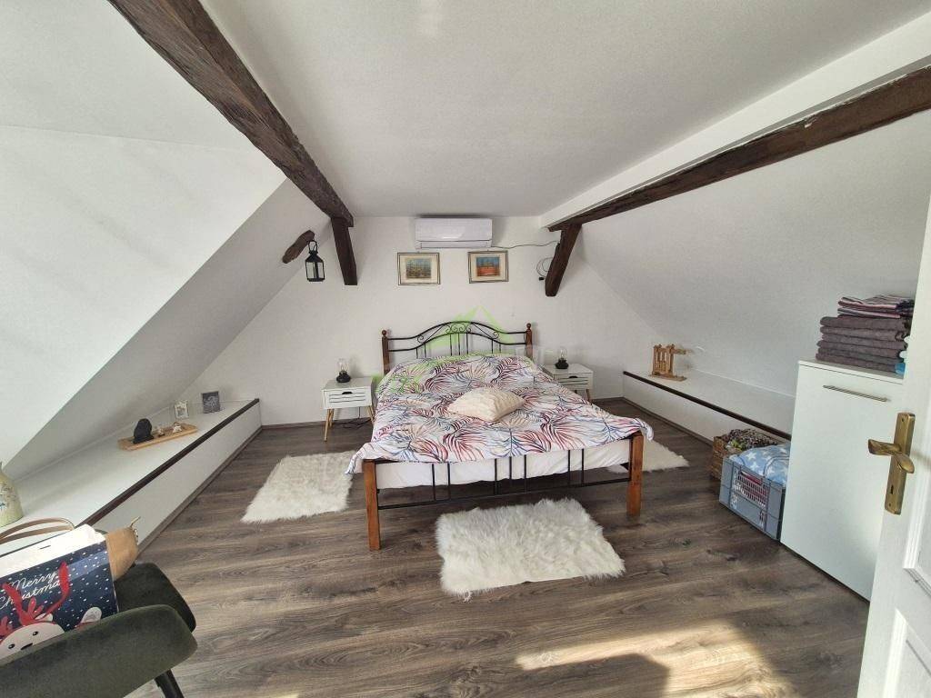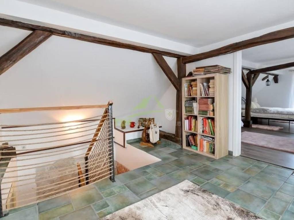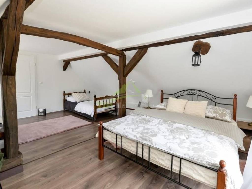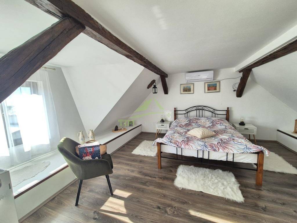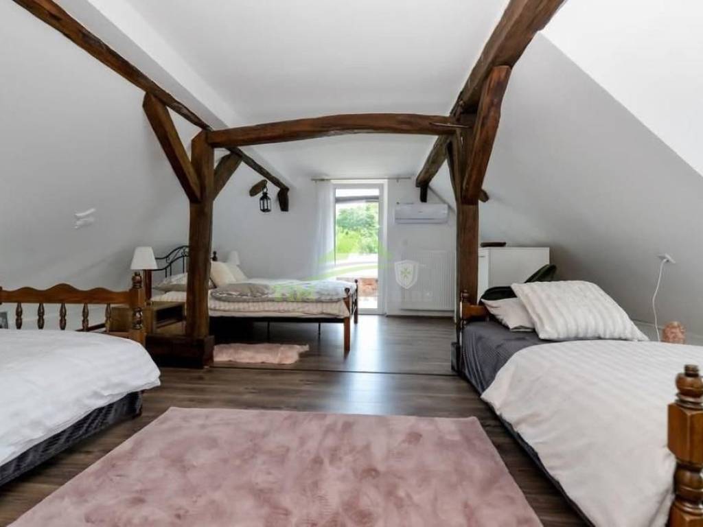 Kompletno renovirana te novouređena kamena kuća građena davne 1768. godine; kuća je dio starog mlina u kojoj se nekad mljela pšenica iz okolnih sela.Kuća visoka prizemnica tlocrtne površine 171 m2; smještena na zemljišta ukupne površine 1.982 m2.Sastoji se od prizemlja i visokog potkrovlja.Kuća je u potpunosti renovirana; kompletna zamjena instalacija (struja, voda, kanalizacija); zamjena podova; nova PVC stolarija; vrhunska izolacija krovišta; vanjska termofasada (10 cm stiropora); hidroizolacija oko kuće.Grijanje putem kamina koji grije cijelu kuću i daje poseban osjećaj topline.Svaka prostorija je specifična na svoj način pa se tako uz boltani i ciglani strop može naći i prostor u kojoj je zadržan stari žrvanj koji podsjeća na bitnu funkciju nekoć davnog mlina.Kuća je smještena na mirno i tihoj lokaciji udaljena svega 3.5 km od najpoznatijeg dvorca Trakoščan.Nekretnina je idealna za udoban obiteljski život ili kao potencijal s velikim mogućnostima iznajmljivanja (kategorizirana, te sve dozvole za bavljenjem turizmom).
