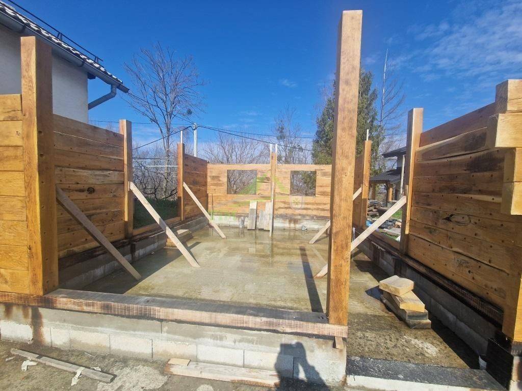 Drvena kuća u izgradnji tlocrtne površine 25 m2; na zemljištu ukupne površine 853 m2; smještena na prekrasnom mjestu sa kojeg se pruža panoramski pogled na okolne zagorske brege; mirna i tiha lokacija.Budućem vlasniku je osigurano kompletno drvo za završetak izgradnje objekta zajedno sa krovištem.Priključak vode; mogućnost priključka struje.