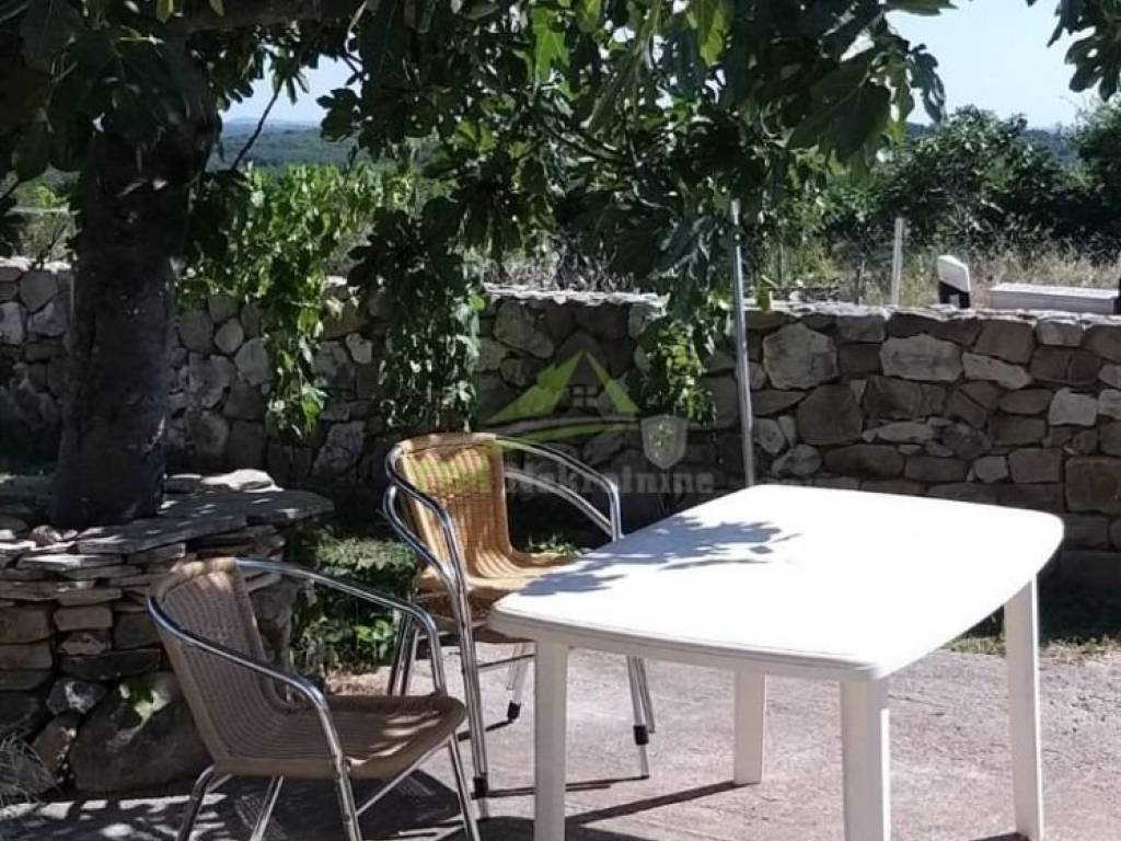 Građevinsko zemljište sa postojećim objektom ukupne površine 1.519 m2; smješteno na mirnoj lokaciji odaljeno 2 km od mora.Zemljište lijepog oblika širine 36 metara a dužina parcele iznosi 43 metara.Na parceli se nalazi  kamena kuća prizemnica tlocrtne površine 32 m2 sa pomoćnim objektom površine 14 m2.Priključak struje; voda (putem bušotine); septička jama.