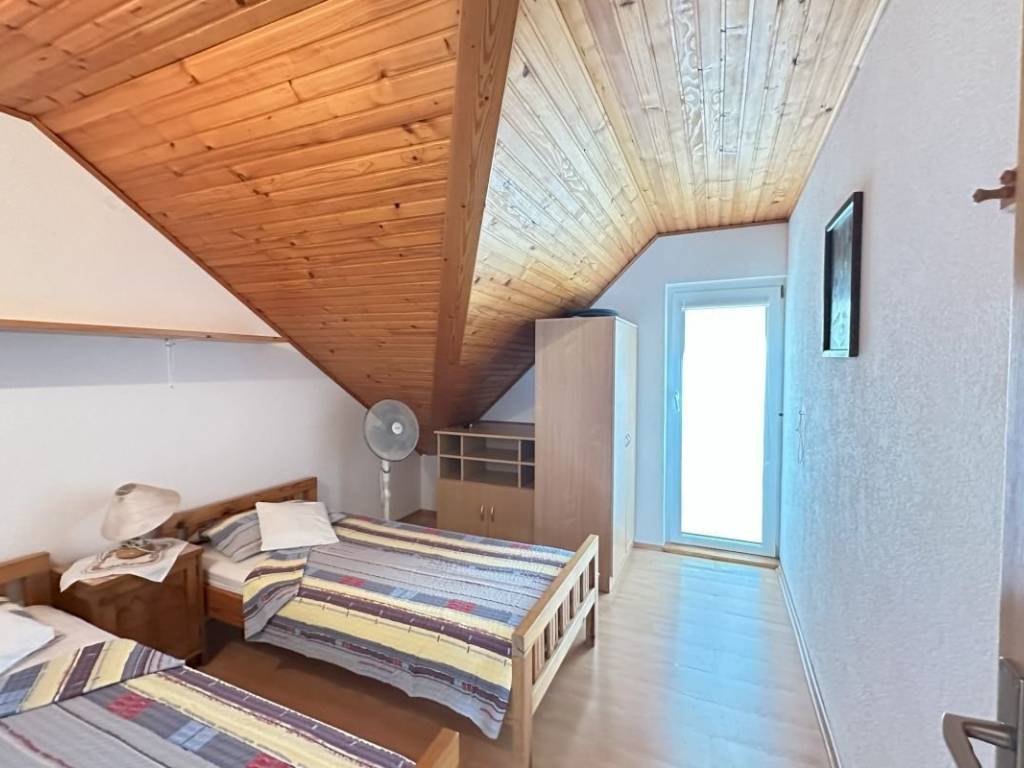 Iznajmljuje se dvosobni stan s pogledom na more, smješten na drugom katu privatne kuće. Stan se sastoji od dvije spavaće sobe, svaka s izlazom na balkon, kupaonice te dnevnog boravka s kuhinjom, koja također ima vlastiti izlaz na balkon.   Stanu pripada i vlastito parkirno mjesto. Nalazi se na odličnoj lokaciji, udaljen samo pet minuta hoda do plaže. Uz fiksni iznos najma plaća se i fiksni iznos režija, koji iznosi 50 eura po osobi. Vlasnici ne žive u kući, a svi stanovi u kući namijenjeni su isključivo za dugoročni najam.   * S obzirom na promjenjivost i dinamiku iznjamljivanja, oglas je informativnog karaktera te ne mora nuzno znaciti da je ovaj stan dostupan za najam. Za aktualne informacije Vas molimo da nas kontaktirate.