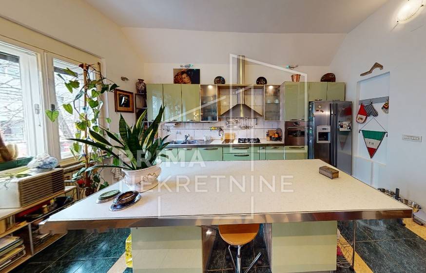 Komforan dvosoban stan na prvom katu zgrade u blizini Kvaternikovog trga. Sastoji se od ulaznog predsoblja, kuhinje s blagovaonicom i dnevnim boravkom koji ima izlaz na balkon, kupaonice s hidromasažnom kadom, spavaće sobe, garderobe i još jednog balkona. Prije nekoliko godina promijenjene su sve instalacije, uređeni podovi, keramika, stolarija, laminat u dnevnom boravku i spavaćoj sobi. Stan je u originalu bio trosoban, ali je srušen zid između dvije sobe čime je povezan prostor kuhinje i dnevnog boravka. Orijentiran je na južnu, sjevernu i zapadnu stranu.