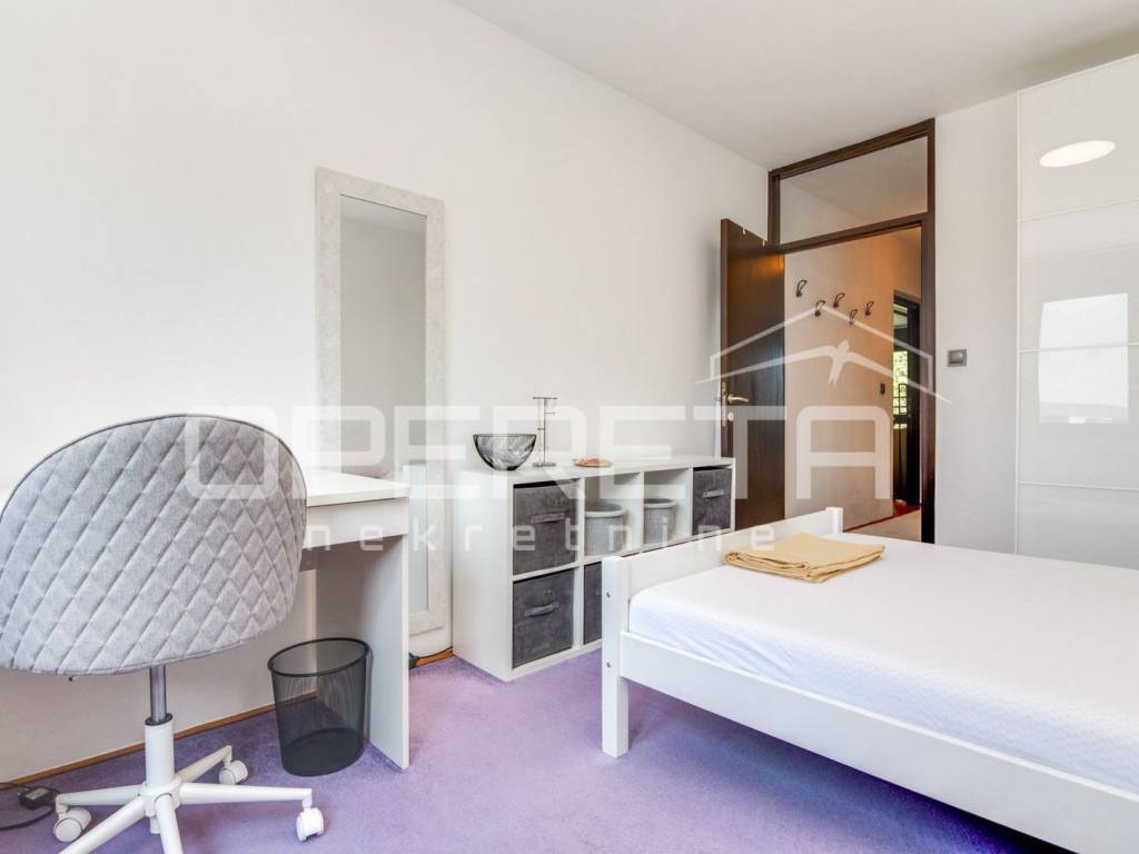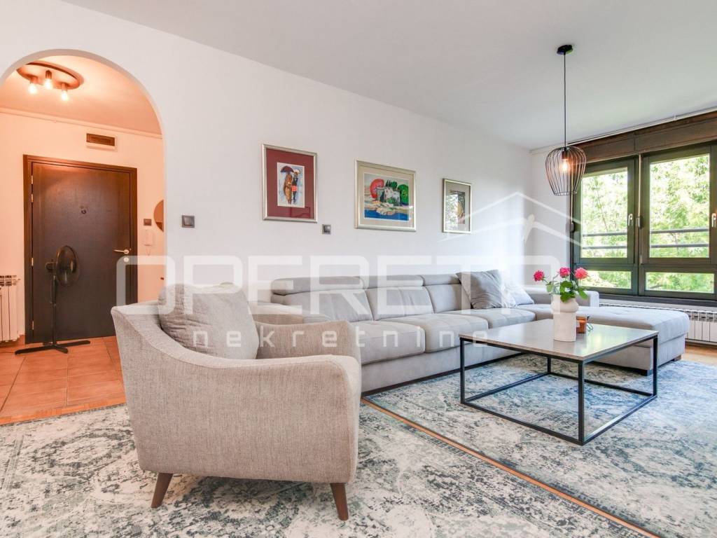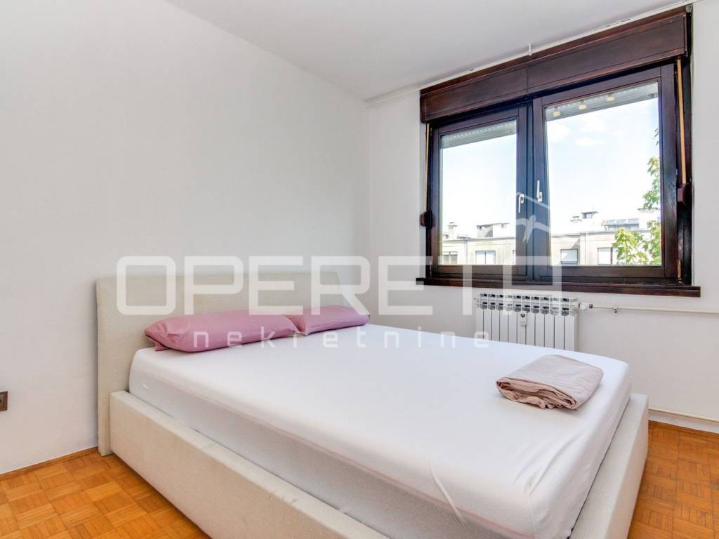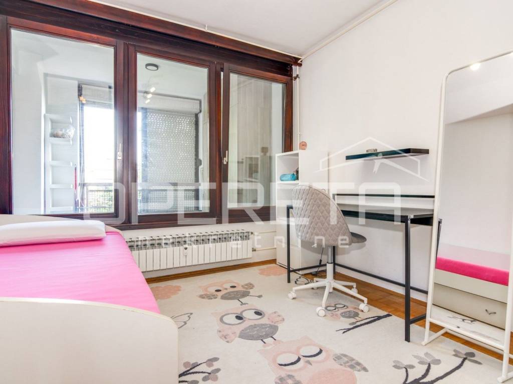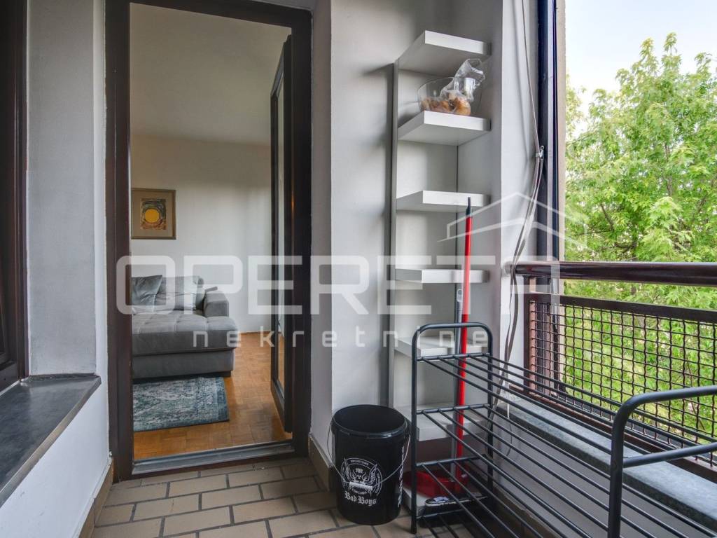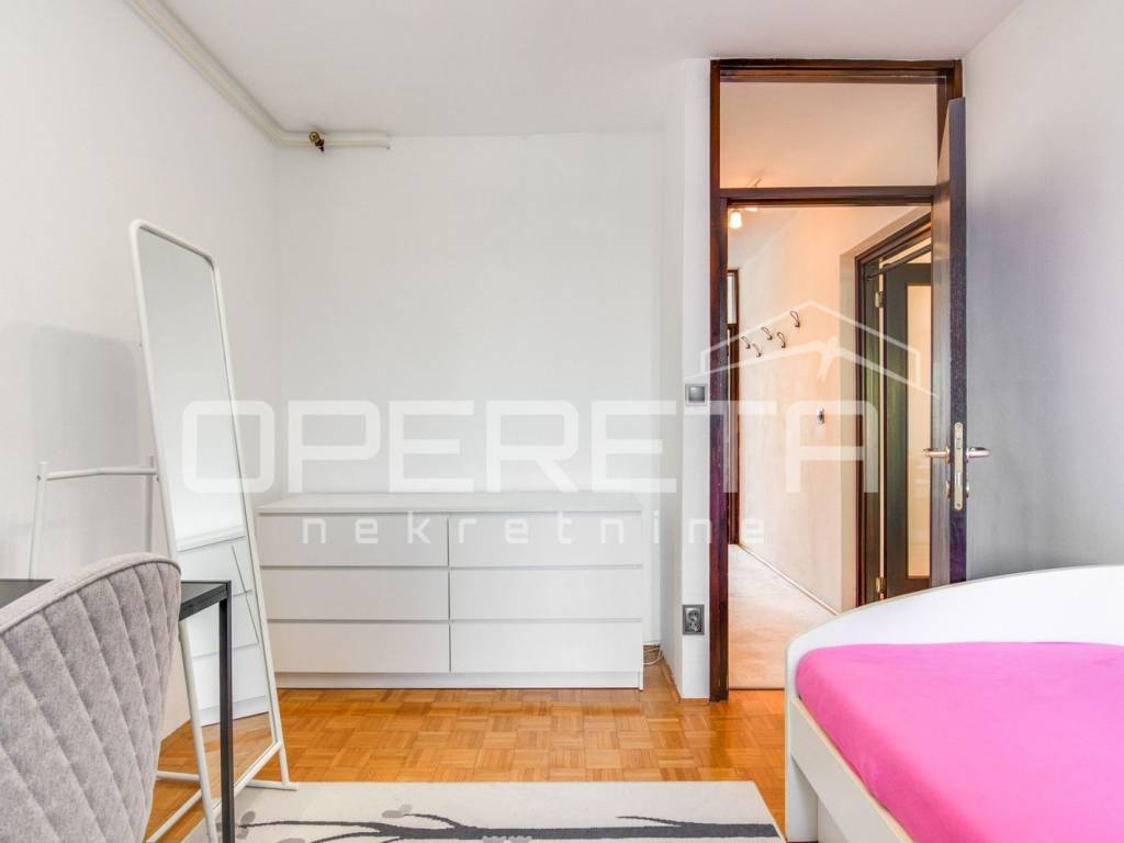 U vrlo dobrom stanju prostrani 4-soban stan koji se sastoji od ulaznog hodnika gdje je smještena blagovaonica, kuhinje, dnevnog boravka s izlazom na lođu, 3 spavaće sobe, kupaonice s WC-om, odvojenog WC-a te ostave.