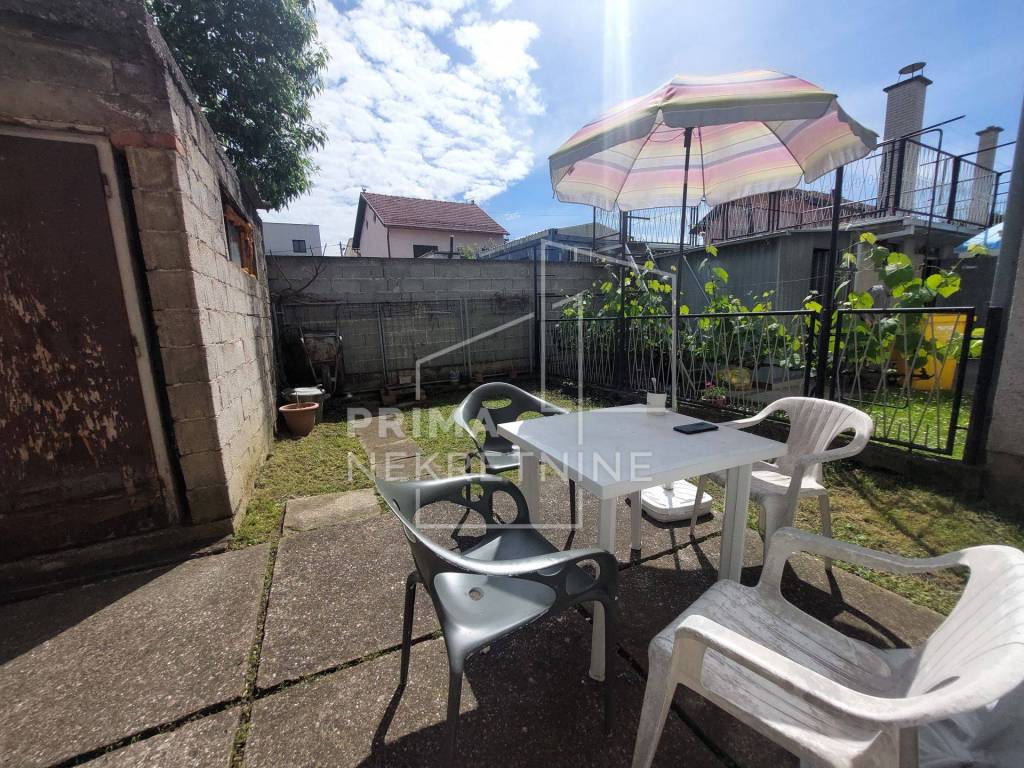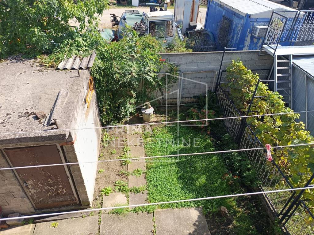 S prednje strane kuće je manje dvorište (cca 30 m2), može se koristiti za parkiranje, a sa zadnje strane je također dvorište površine (45 m2) gdje se nalazi i zidano spremište.