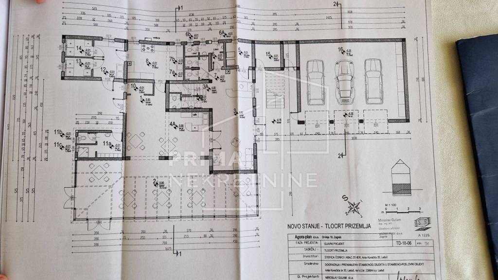 Garaža je zaseban objekt s tri parkirna mjesta površine 100 m2.