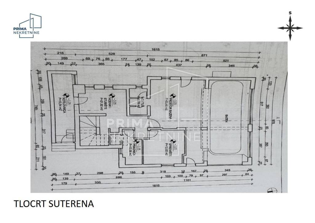 Ispod bazena je podrum u kojem je smještena bazenska tehnika, WC, ljetna kuhinja s izlazom na vanjski roštilj s vodom i strujom.