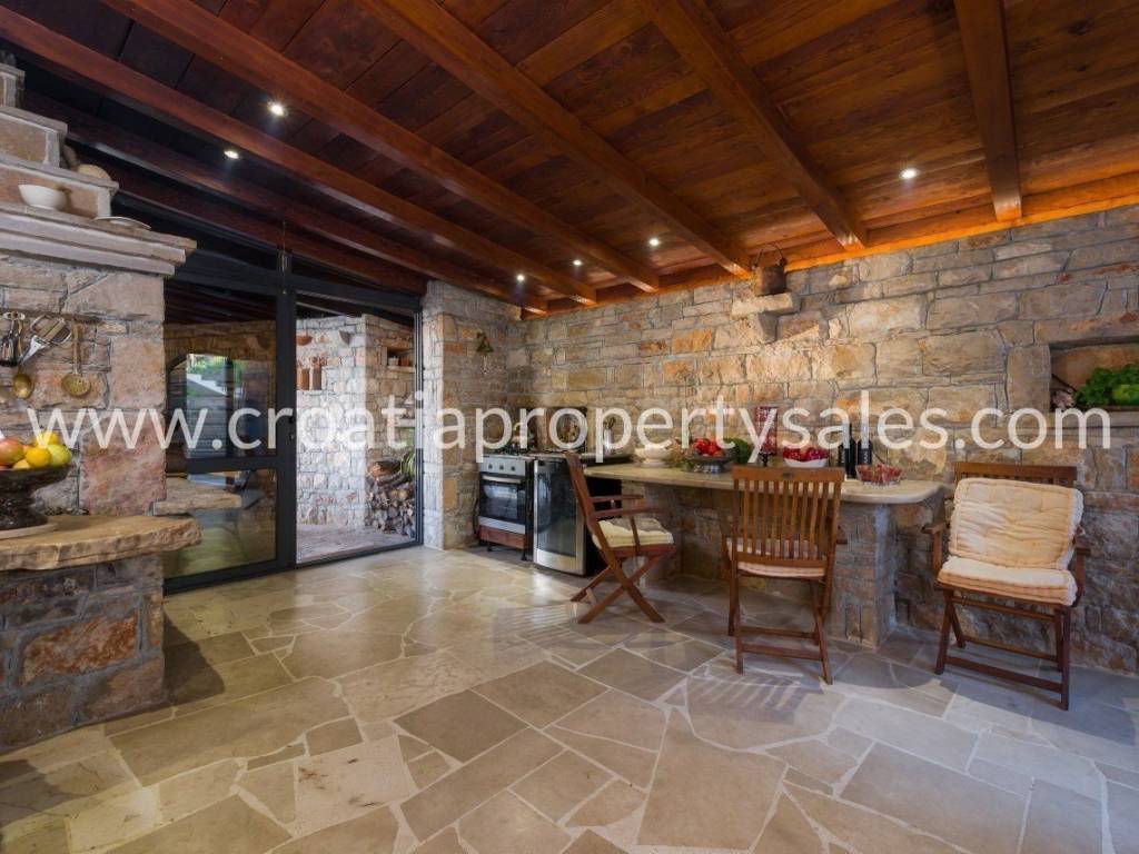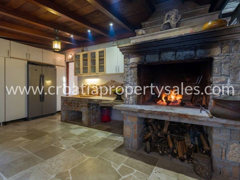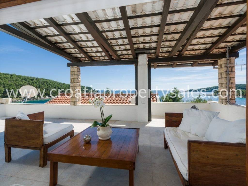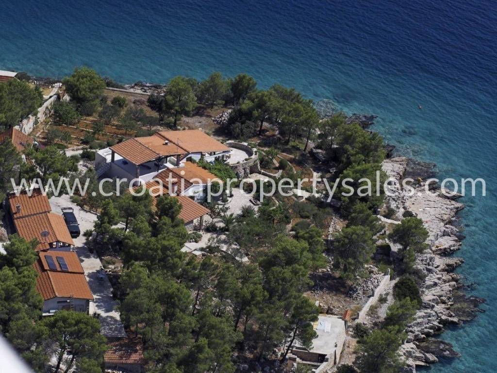 Ekskluzivna rezidencija na jedinstvenoj lokaciji u prvom redu do mora.Vila smještena u očaravajućem, rajskom okruženju na osami uz more, predstavlja jedinstveno, autentično i luksuzno utočište.Smještena usred mediteranskih vrtova ova prekrasna oaza mira spušta se do prekrasne plaže i mora na malom poluotoku što osigurava prekrasan pogled na more koji obavija utočište aurom potpune privatnosti. Ovo arhitektonsko remek-djelo besprijekorno spaja mediteranski šarm s prirodnim ljepotama otoka.Vila je izgrađena od bračkog kamena i ukrašena stropnim gredama, lukovima i francuskim prozorima koji se otvaraju na natkrivene verande.Imanje se prostire na 2 700 m2 uređenog zemljišta među maslinama, borovima, mediteranskim biljem što uistinu odiše mirom i luksuzom u potpunoj privatnosti. Sastoji se od glavne kuće/rezidencije i kuće za goste koja je u naravi nekadašnja crkvena kapelica. Glavna kuća ima 3 spavaće sobe. Svaka soba ima izlaz na verandu i terase koje su savršena mjesta za početak dana uz jutarnju kavu.Dnevni prostor s potpuno opremljenom kuhinjom, s jedne strane ima izlaz na zaštićenu terasu predviđenu za blagovanje, a s druge na potpuno opremljenu veliku ljetnu kuhinju.Stepenice vode na krovnu terasu gdje se nalaze ležaljke – mjesto zamišljeno kao kutak za opuštanje uz fascinantne zalaske sunca.Kuća za goste ima otvoreni dnevni boravak s izlazom na vanjsku terasu, galeriju s spavaćom sobom i kupaonicu. Inspirativan vanjski prostor je oaza mira, s bazenom grijanim solarnom energijom sa svježom morskom vodom, domišljato ugrađenim u prirodnu stijenu, s pogledom na zaljev i uvalu iz svih kutova.Kaskadni vrtovi ukrašeni maslinicima i voćnjacima vijugaju do kristalno čistog mora, pružajući izravan pristup plaži stepenicama koje besprijekorno povezuju prirodu i luksuz.Ova jedinstvena nekretnina nudi parking za nekoliko vozila, a postoji mogućnost priveza broda izravno ispred vile.Uronite u profinjenu ljepotu ove izvrsne nekretnine, gdje njen dominantni položaj u prirodnom okruženju, udaljenost od plaže, te otvoreni dizajn i udobni životni prostori stvaraju atmosferu profinjene autentične elegancije i istinski neusporedivog utočišta.Ova izvrsna nekretnina nudi intiman i miran ambijent, što je čini idealnim utočištem za one koji cijene privatnost i privlačnost luksuznog mediteranskog načina života.