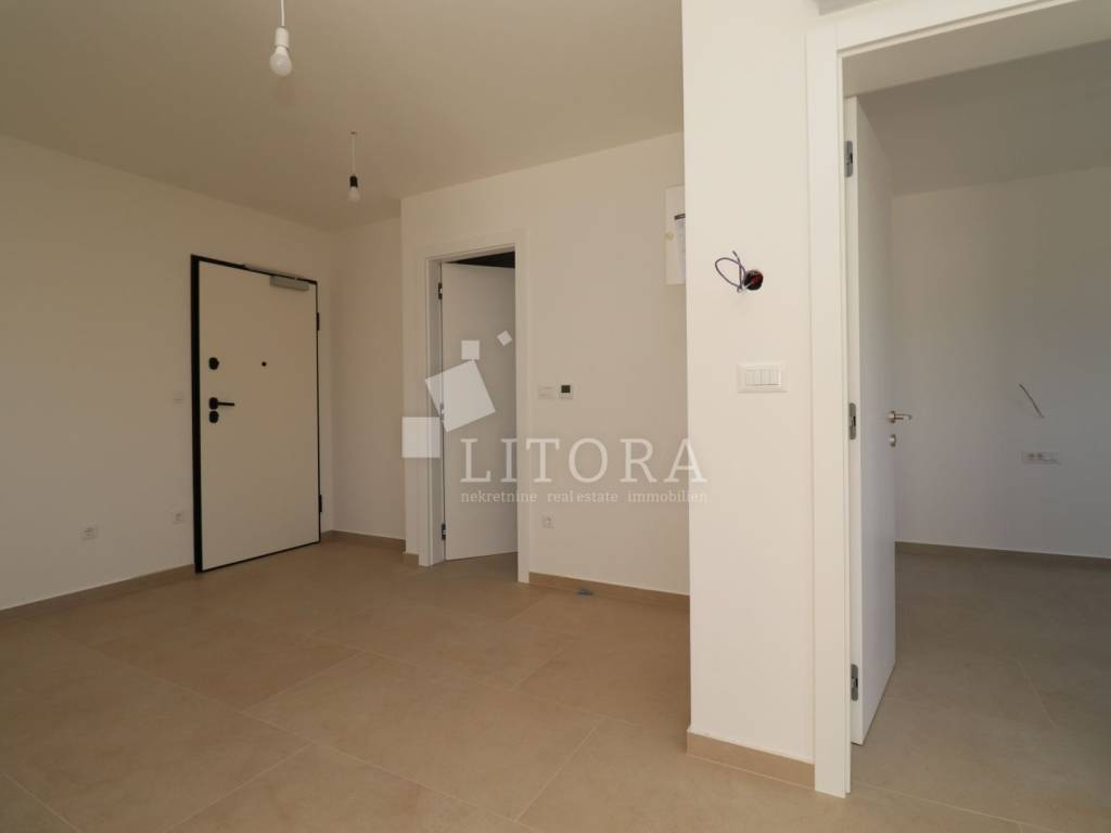 Novouređeni apartman smješten je u prizemlju sklopu višestambene zgrade. Orijentiran je na jugoistočnu stranu.