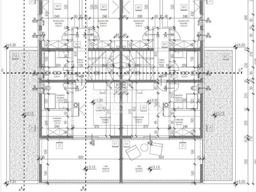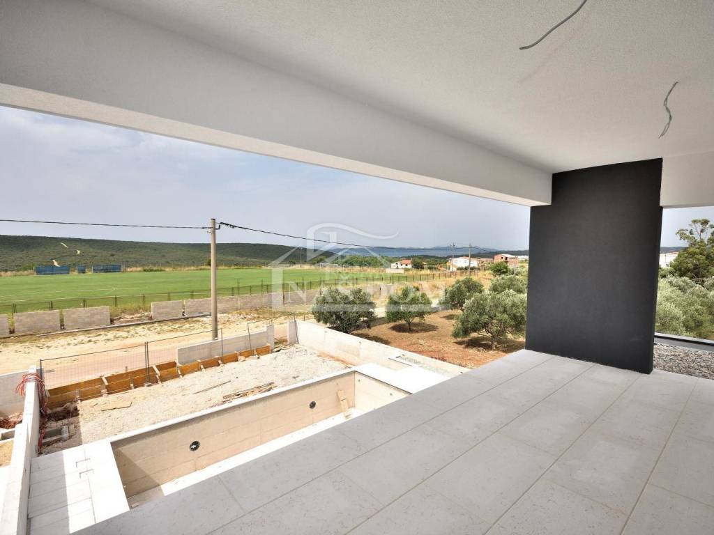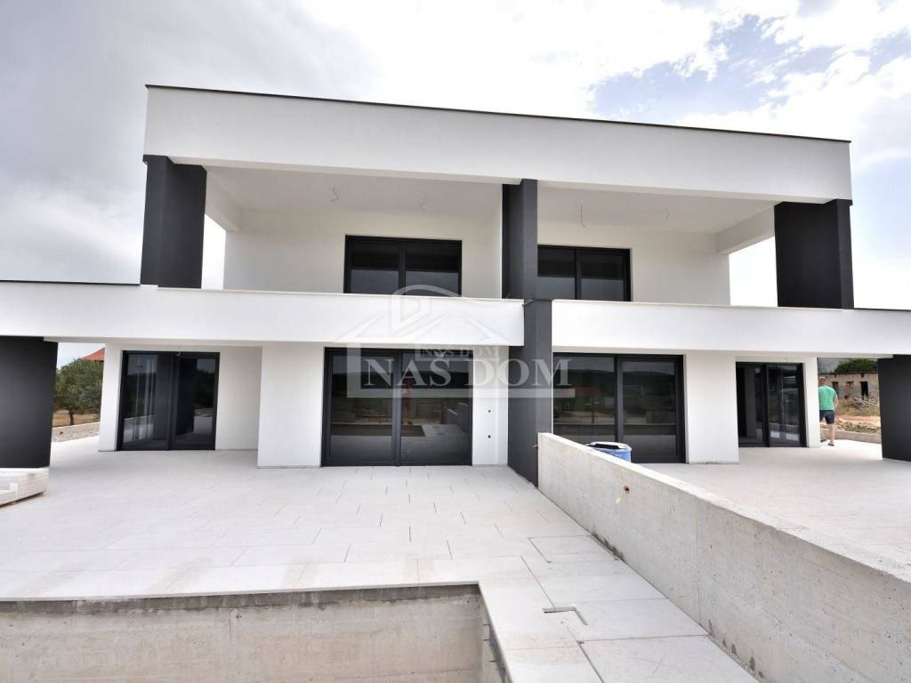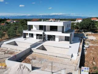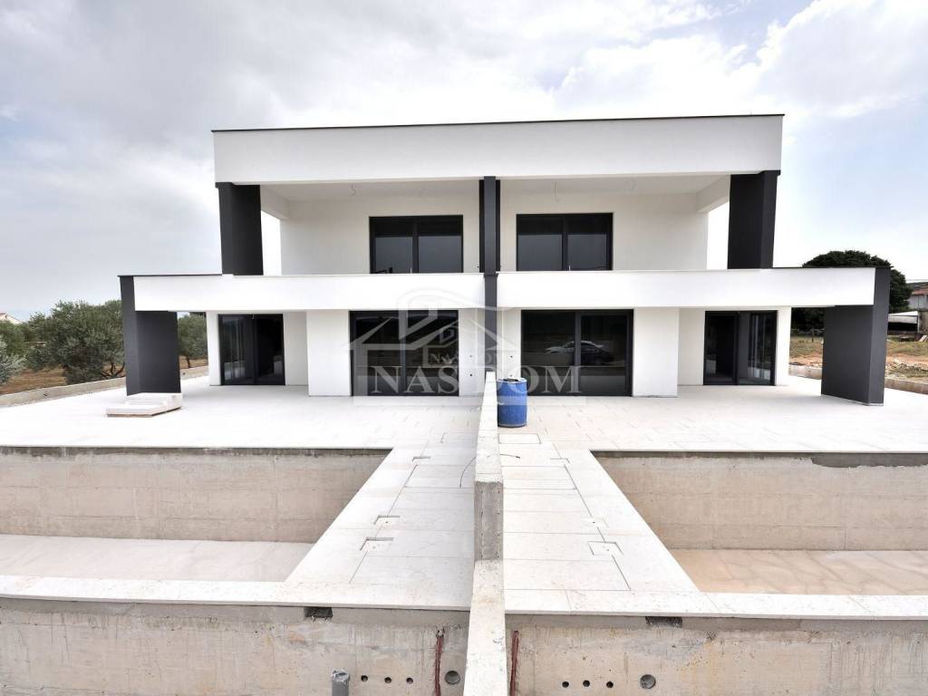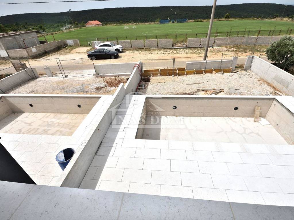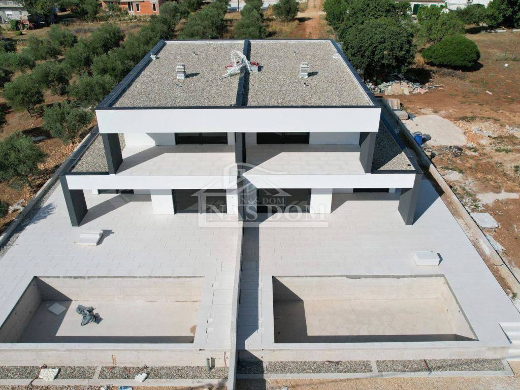 Debeljak - prodaje se dvojna kuća sagrađena na parceli ukupne površine od 883 m2 . Kuća ima ukupnu stambenu površinu od 230 m2 i sastoji se od dvije etaže : prizemlje +kat. U prizemlju se nalazi ulazni prostor, garderoba, spavaća soba s kupaonicom , wc, kuhinja s blagavaonicom i open space dnevni boravak s izlazom na natkrivenu terasu i bazen . Unutarnjim stubištem se ide na kat kuće koji se sastoji od hodnik, kupaonica, dvije spavaće sobe i master spavaća soba s vlastitom kupaonicom i garderobom i velikom terasom s pogledom na bazen. Kuća moderne arhitekture se gradi kvalitenim materijalima i biti će opremljena sa :