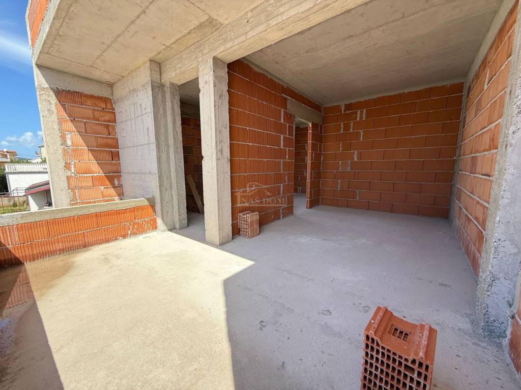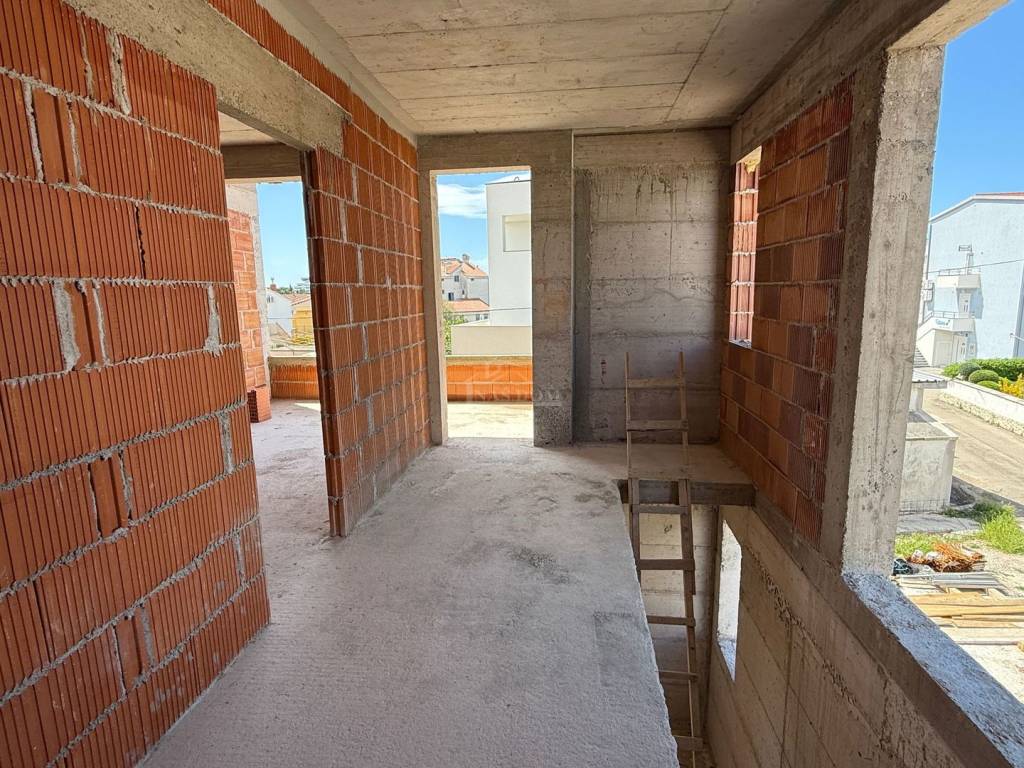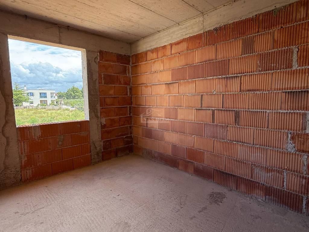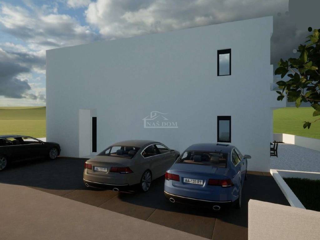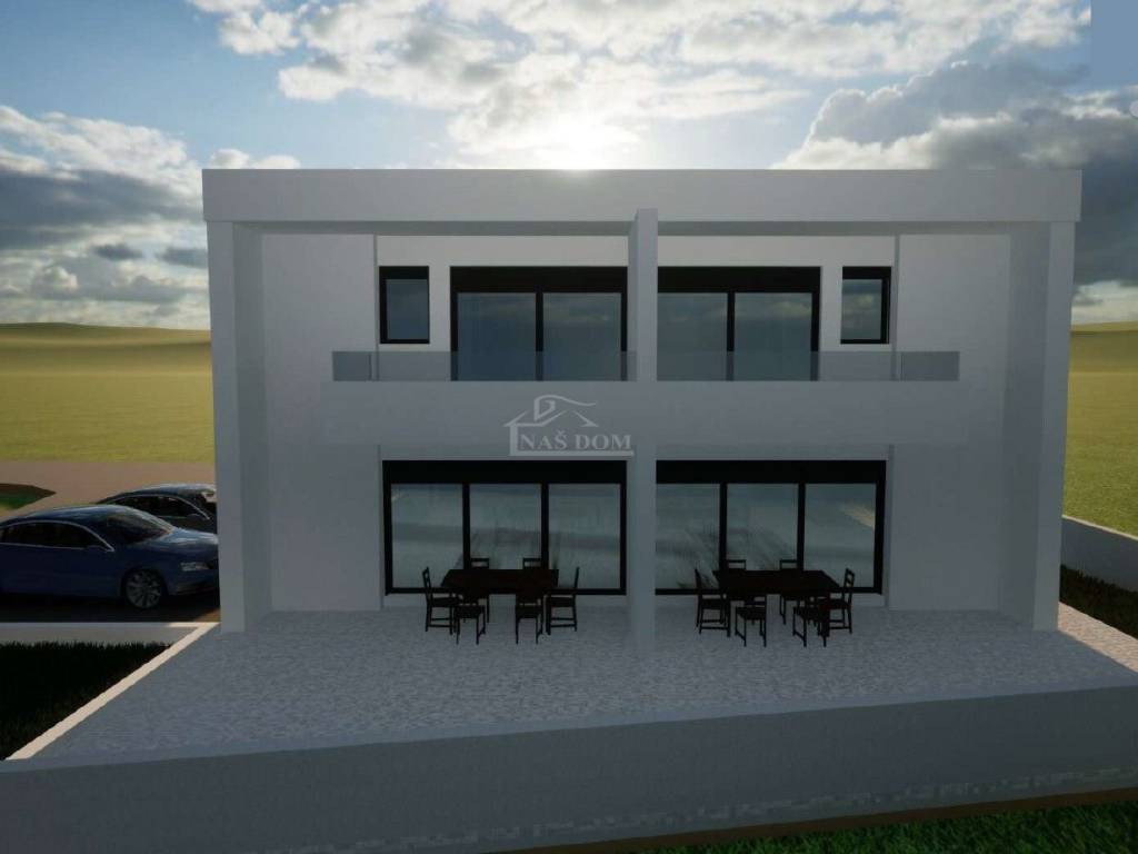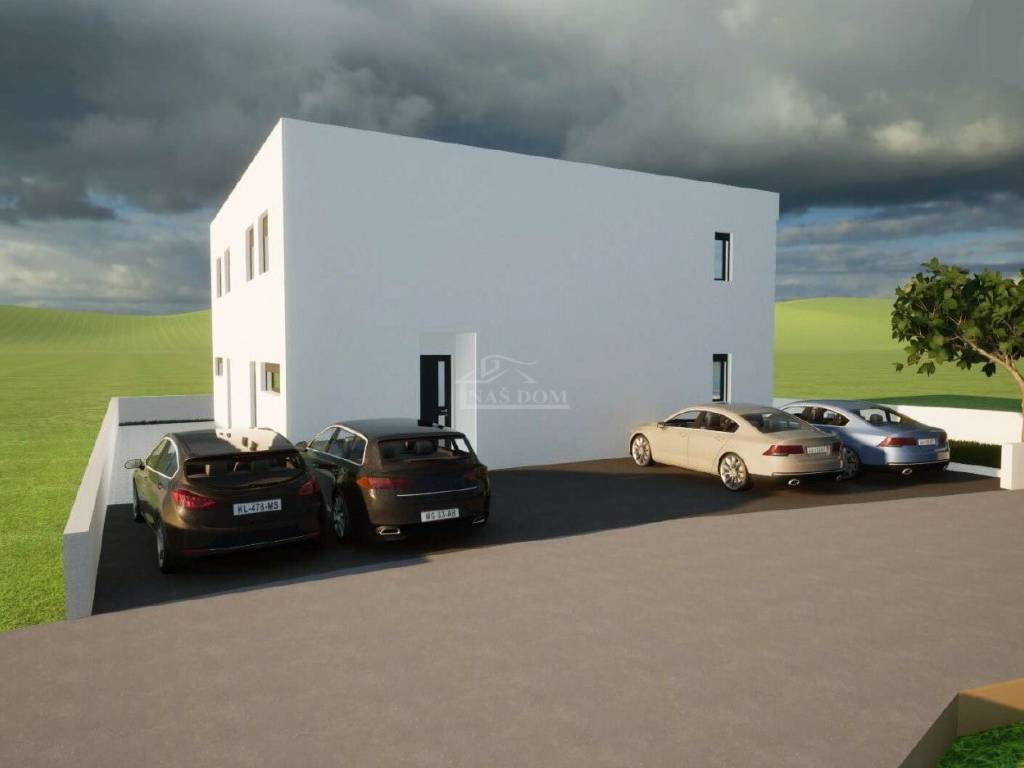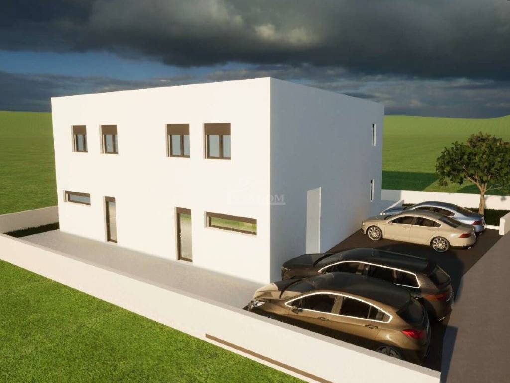 Vodice-*NOVOGRADNJA* **DVOJNA KUĆA** prodaje se dvojna kuća na mirnoj lokaciji, od najbliže plaže udaljena svega 550m. Kuća modernog izgleda iam dvije etaže: PRIZEMLJE+KAT. Kuća se trenutno gradi i biti će opremljena prema posljednjem standardu gradnje . Planirani rok završetka gradnje i mogućnost useljenja je travanj 2026.