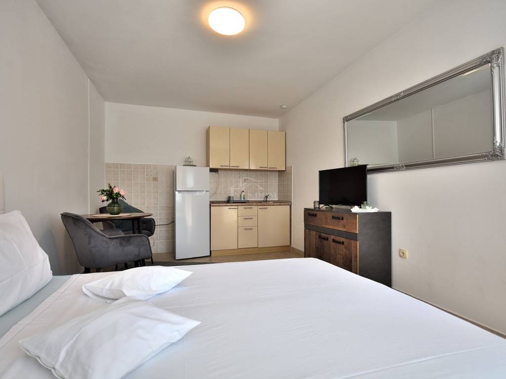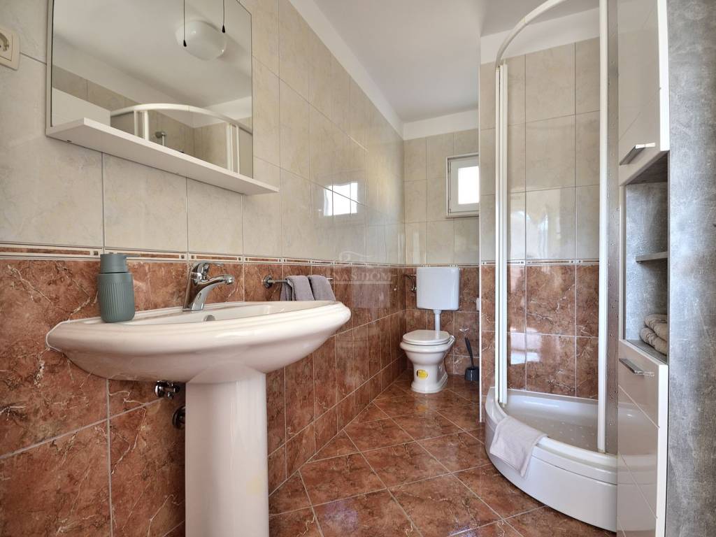 Vodice- prodaje se kuća u širem centru Vodica s ukupno 5 apartmana. Kuća katinica veličine 174m2 sagrađena je na parceli ukupne veličine 437m2. Sastoji se od dvije etaže : pirzemlje +kat. U prizemlju se nalazi jednosoban stan koji se sastoji od ulaz, kuhinja s blagovaonicom dnevni boravak, spavaća soba, kupaonica i ostava.U prizemlju se nalaze još dva studio apartmana te na katu isto tako dva studio apartmana i terasa. Kuća je namještena i klimatizirana. Ima dvorište površine 263m2 koje se sastoji od uređenog dijela za sjedenje i pet parkirnih mjesta. Kuća se nalazi u blizini svih sadržaja, od centra je udaljena oko 350m a od najbliže plaže 450m.