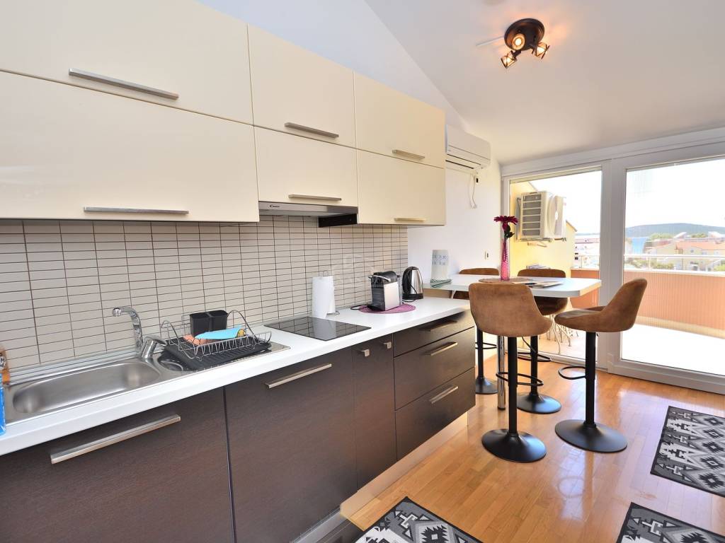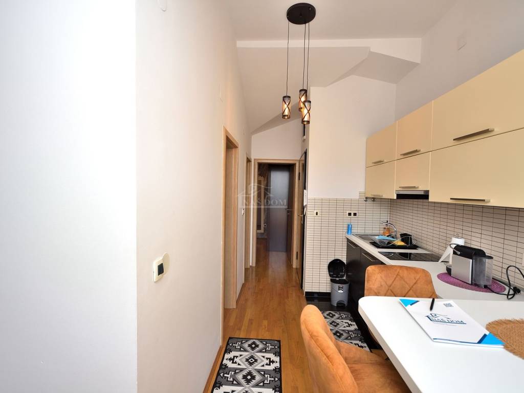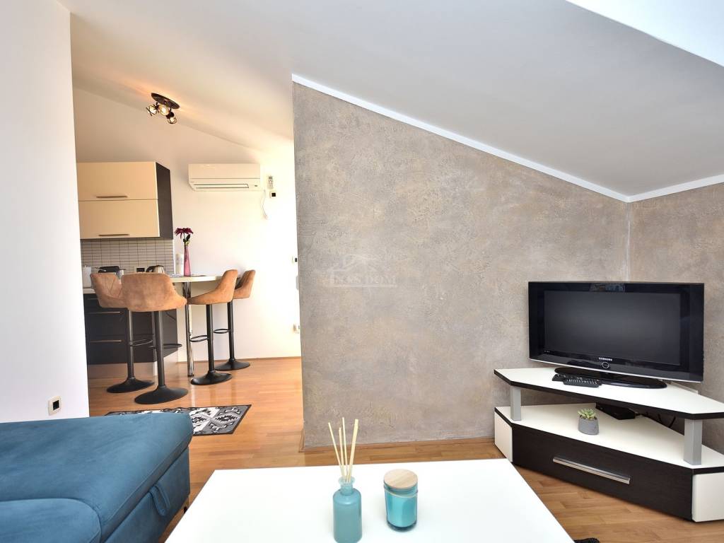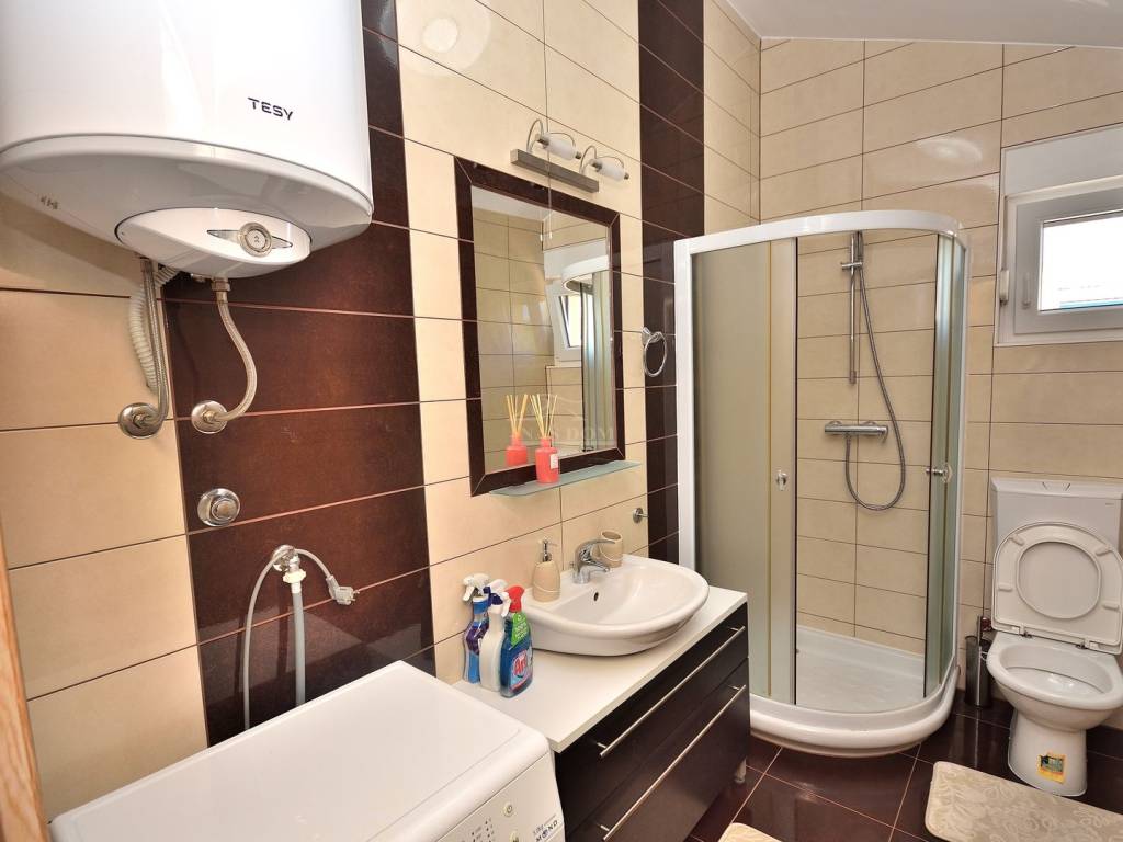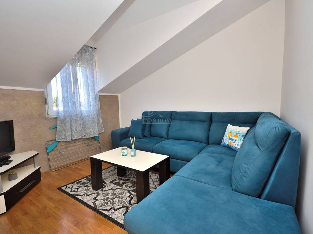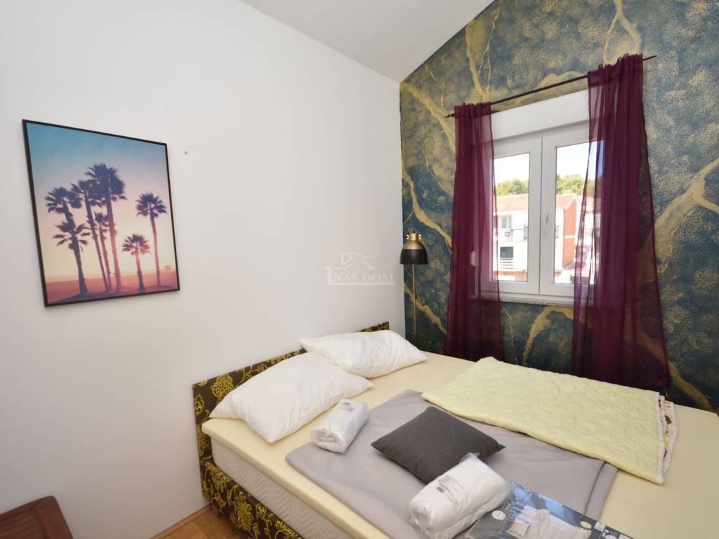 Vodice - prodaje se šarmantan stan na super lokaciji. Nalazi se na drugom katu zgrade s ukupno 6 stambenih jedinica. Stan ukupne neto stambene površine od 48,88m2 sastoji se od ulaz, hodnik, dvije spavaće sobe, kupaonica, kuhinja s blagovaonicom i dnevni boravak i lođa površine 3,71m2. Zgrada sagrađena 2010 godine od plaže je udaljena oko 200 m a od centra 600 m. Stan je klimatiziran i namješten i ima jedno parkirno mjesto ispred zgrade.