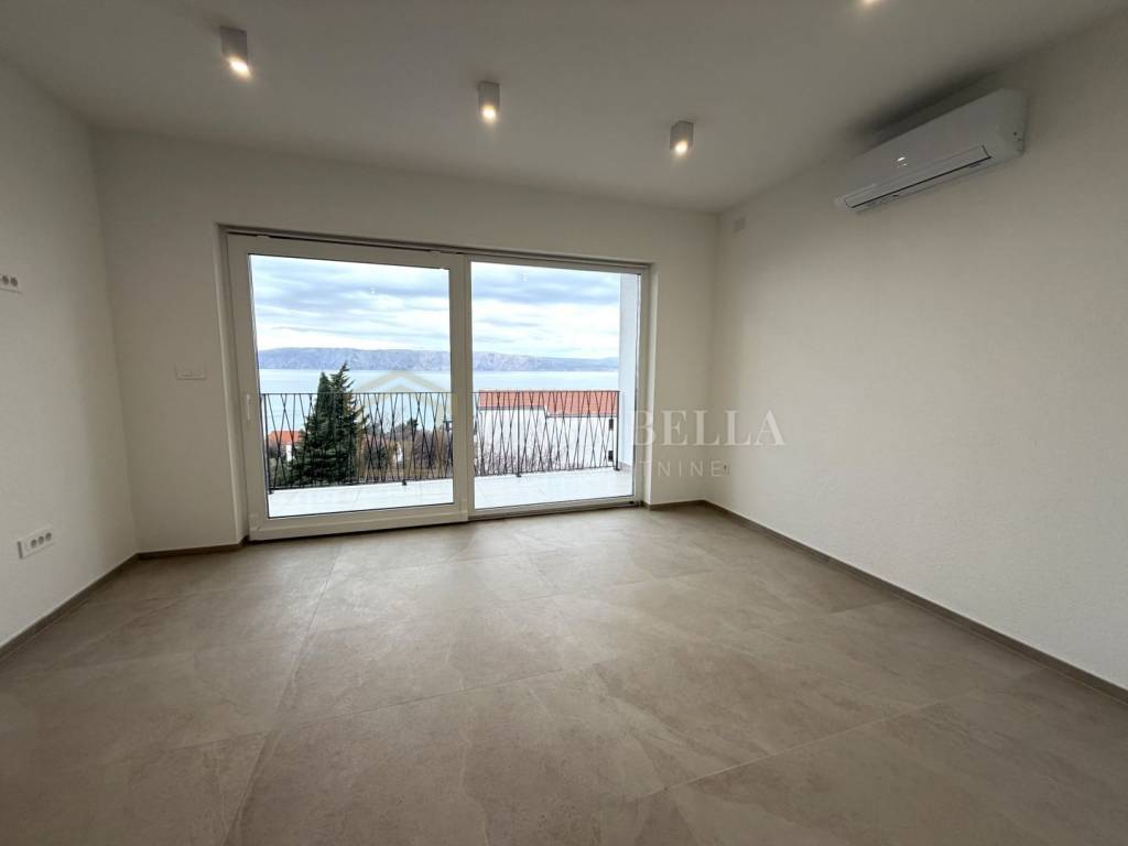 Stan se nalazi na prvom katu i površine je 60 m². Sastoji se od dvije spavaće sobe, kupaonice te dnevnog boravka s kuhinjom i blagovaonicom, s izlazom na natkrivenu terasu koja pruža prekrasan pogled na more i otok Krk.