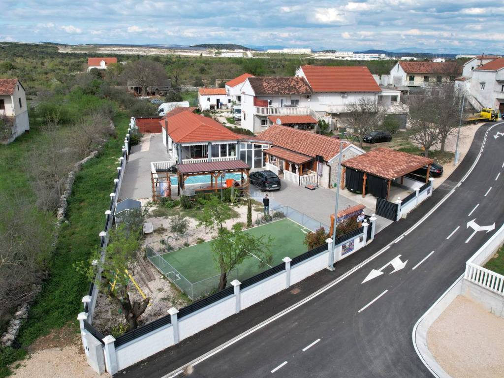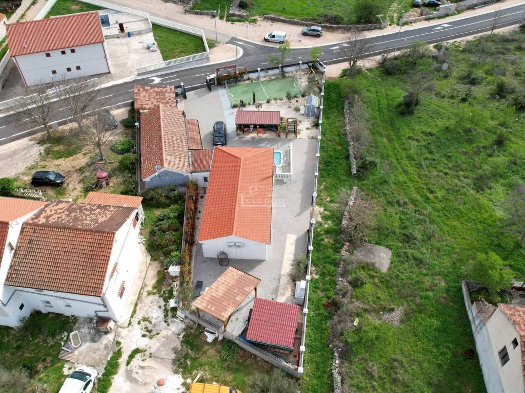 Putičanje - prodaje se imanje s dvije kuće na mirnoj lokaciji. Kuće se nalaze na parceli veličine 982m2 koja je u potpunosti ograđena zidom i metalnim ogradama što osigurava mir i potpunu privatnost. U potpunosti su opremljene, klimatizirane ( spavaće sobe i dnevni boravak) i moderno namještene . Mogu se koristiti za najam u turističke svrhe ili za osobne potrebe. Okućnica je uređena, popločana, sadrži tri natkrivena parkirna mjesta, bazen dimenzija 9m*3m, vrt kultiviran mediteranskim biljem, dječje igralište, sportsko igralište....