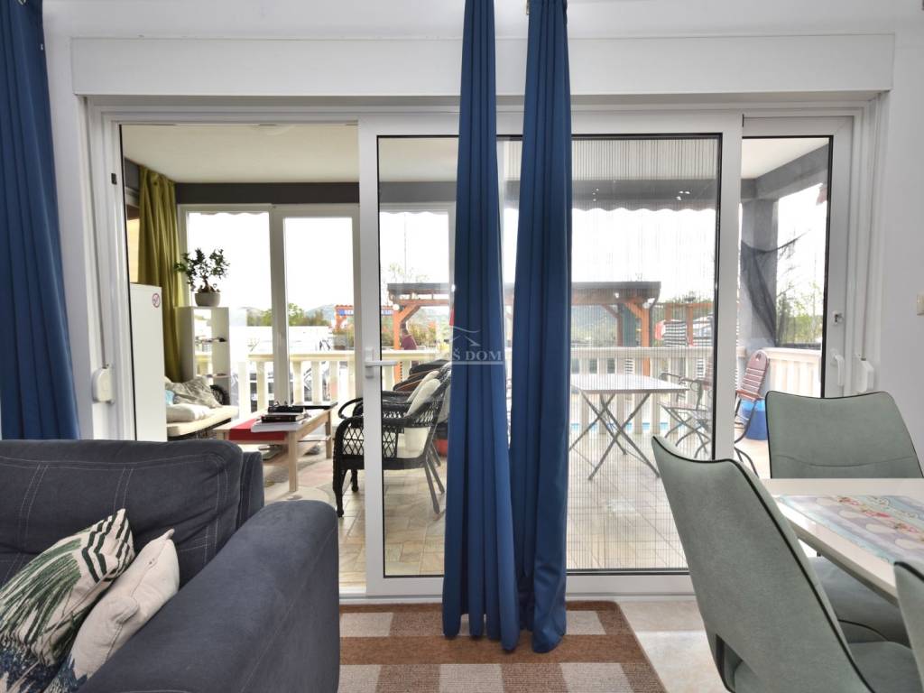 Kuća 1 površine 80m2 sagrađena je 2019g. i sastoji se od dvije spavaće sobe, kupaonica, wc, kuhinja s blagovaonicom i dnevni boravak, zimski vrt, i terasa.
