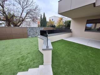 Iz dnevne zone izlazi se na natkrivenu terasu, a potom u privatni vrt, koji se može urediti prema želji: roštilj, biljke poput lovora, višnje i živice, te umjetna trava kao elegantno i praktično rješenje za održavanje. Savršeno mjesto za boravak na otvorenom, bez potrebe za kompromisom između estetike i funkcionalnosti.