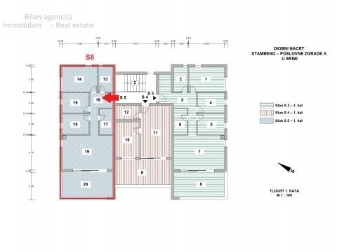 Stan oznake S-5 se nalazi na prvom katu zgrade sa prizemljem i dva kata.