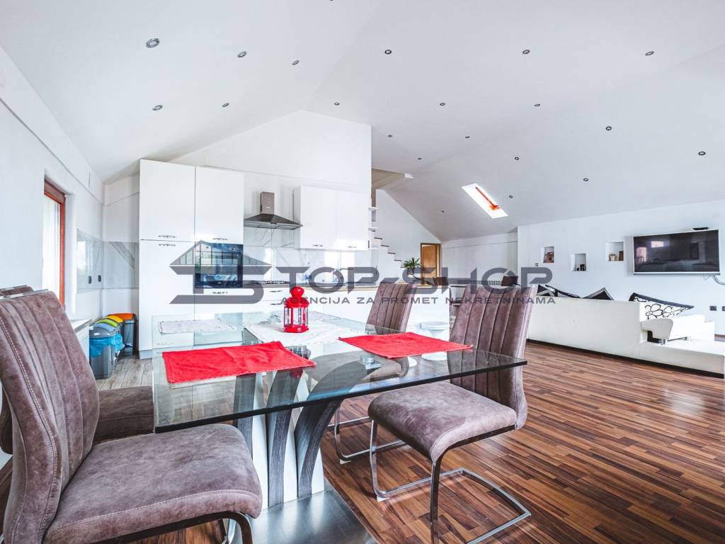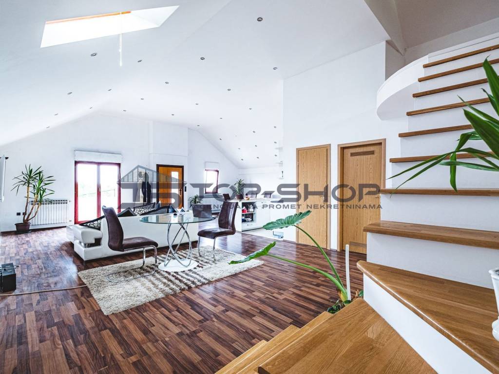 Na prvom katu nalazi se moderan, prostran, novouređeni trosoban stan. Stan se sastoji od dvije spavaće sobe, otvorenog prostora koji se sastoji od dnevnog boravka, blagovaonice i kuhinje te od galerije iznad dnevnog boravka koji se može pretvoriti u dodatnu spavaću sobu, kupaonice s hirdomasažnom kadom i podnim grijanjem, toaleta te dva balkona. Stan je površine 151 m2.