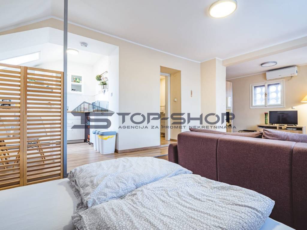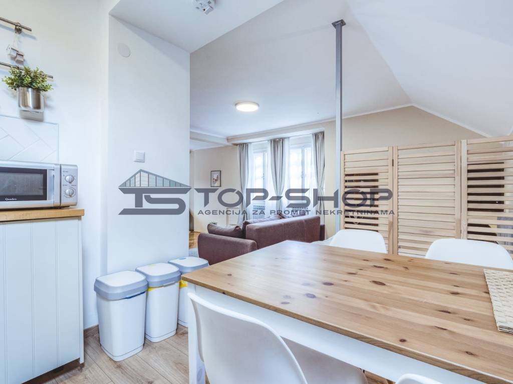 Nalazi se u neposrednoj blizini svih potrebnih sadržaja za kvalitetan život u gradu. U okruženju se nalaze trgovine, tržnica, ljekarne, kina, kazališta, kafići, tramvajske stanice i dječji parkovi. Stan je moderno opremljen te pruža dodatne pogodnosti poput zatvorene loggie, ostave, telefona, satelitske TV, interneta (uključujući optički internet), klimatizacije, portafona, video nadzora i alarma.