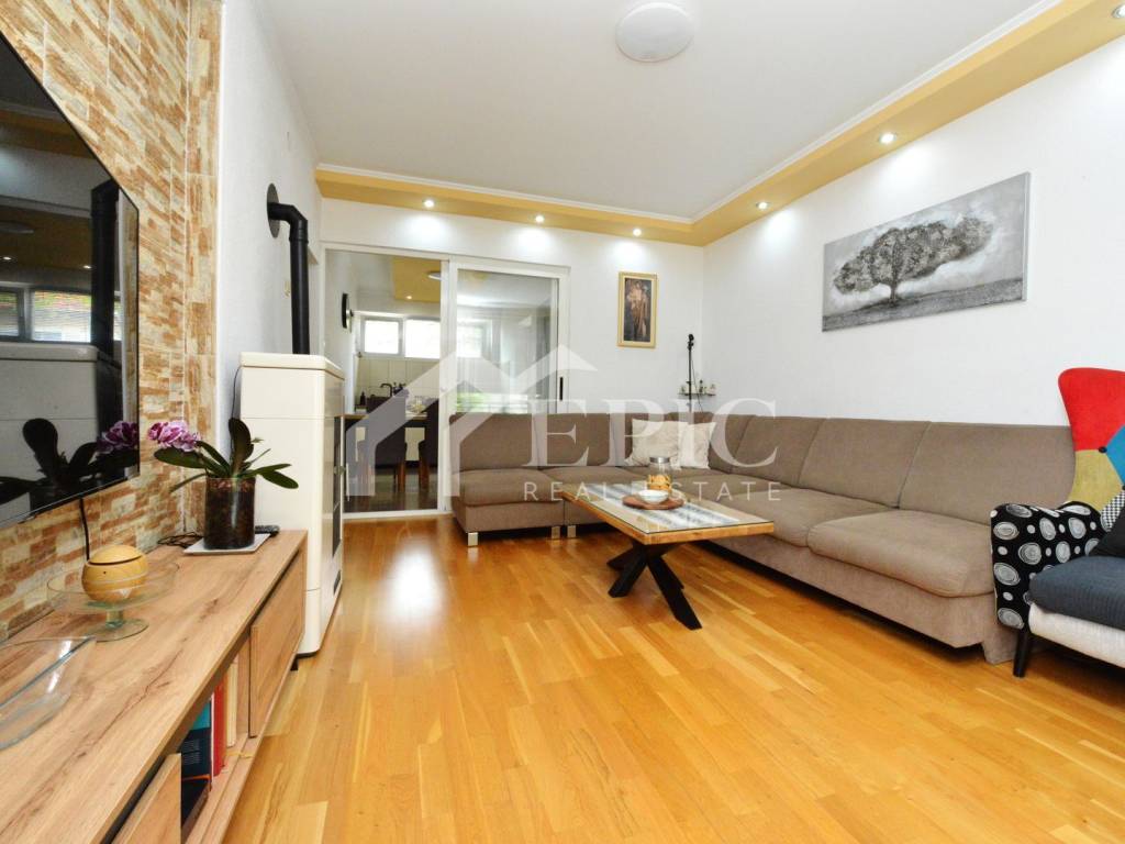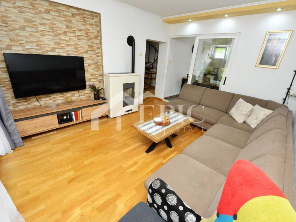Stanu pripada i uređena pomoćna prostorija ili drvarnica. Grijanje i hlađenje s peći na pelete i dva klima uređaja. Instalacija grijanja sprovedena je i na gornju etažu zasebno za svaku sobu.