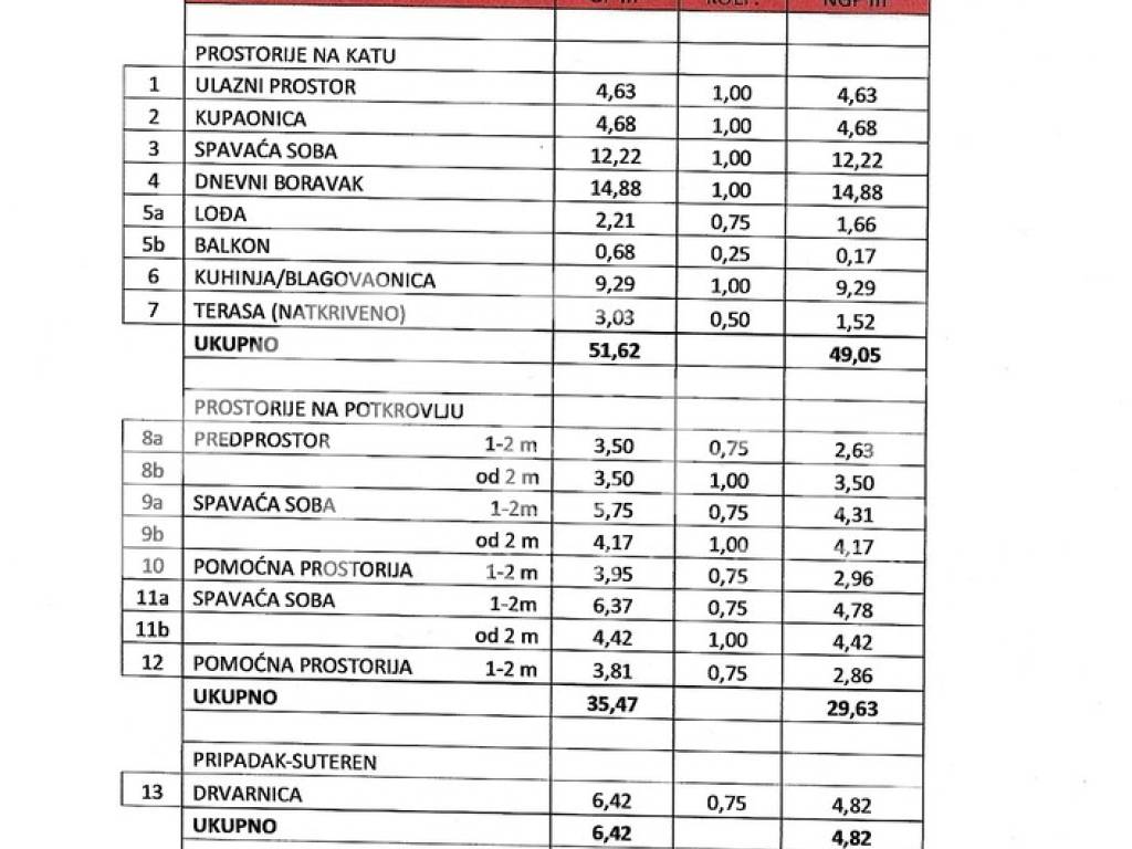 Stambena jedinica koja se proteže na 1 (prvi) kat i potkrovlje.