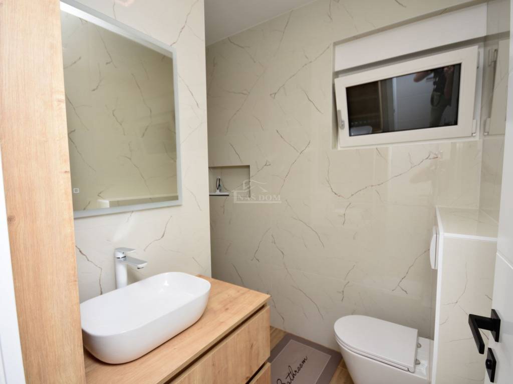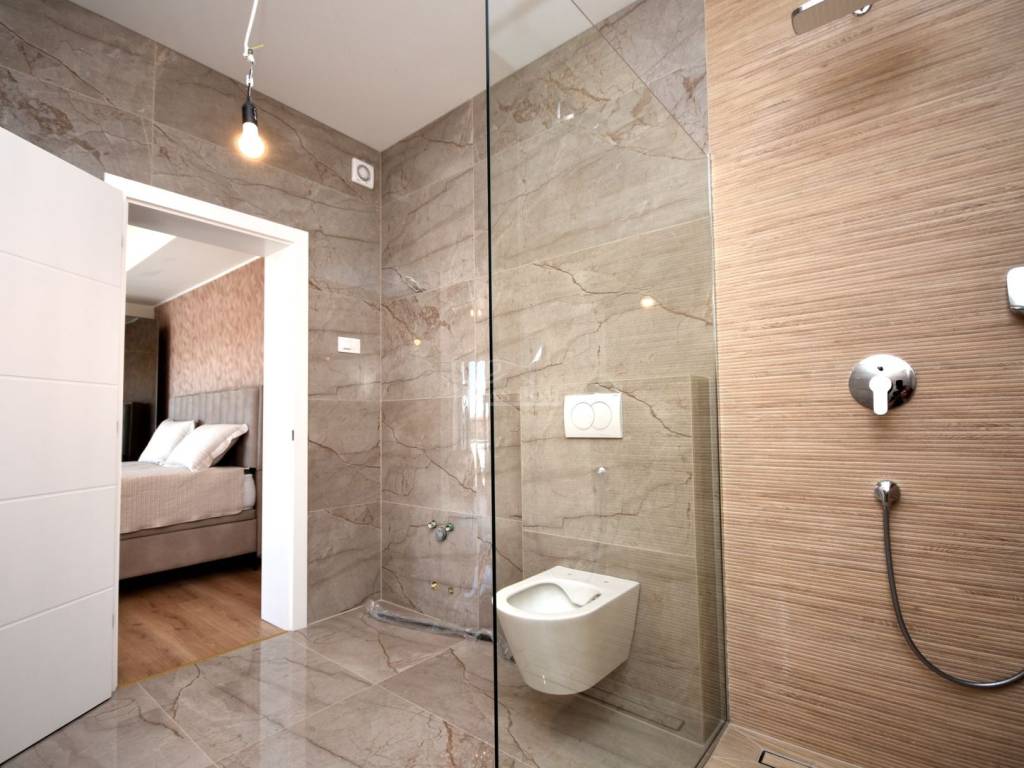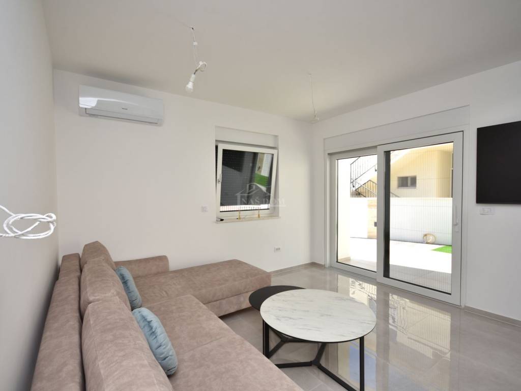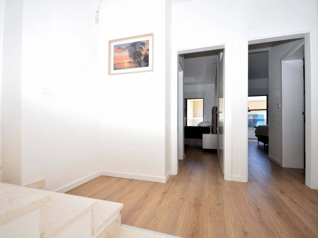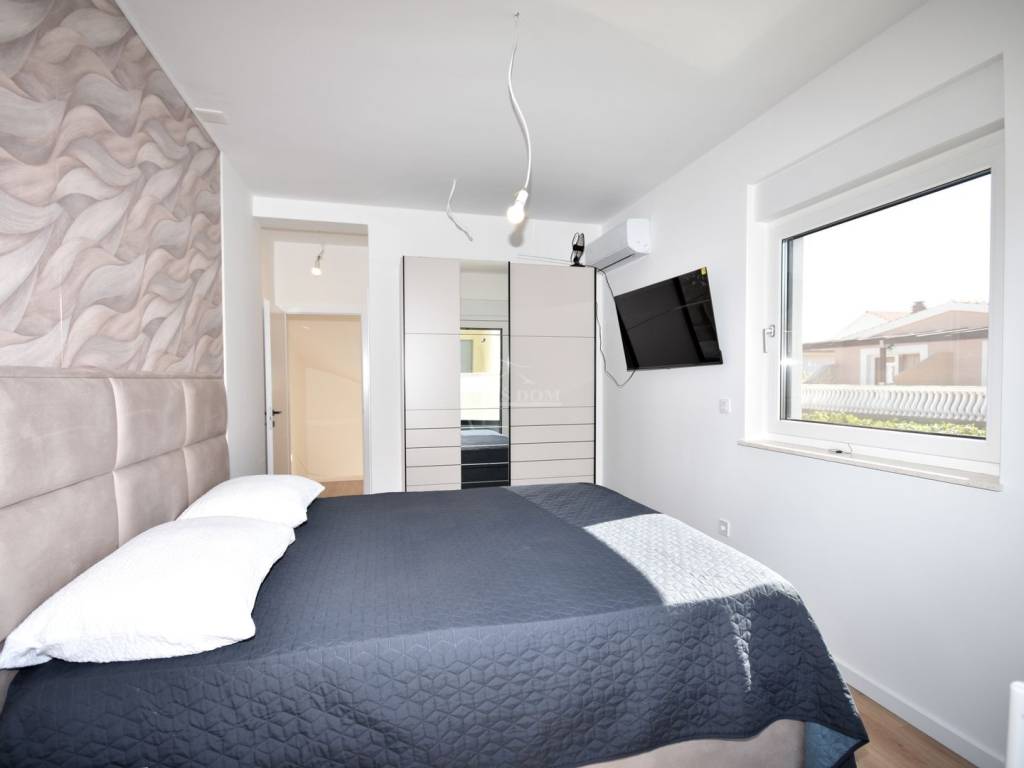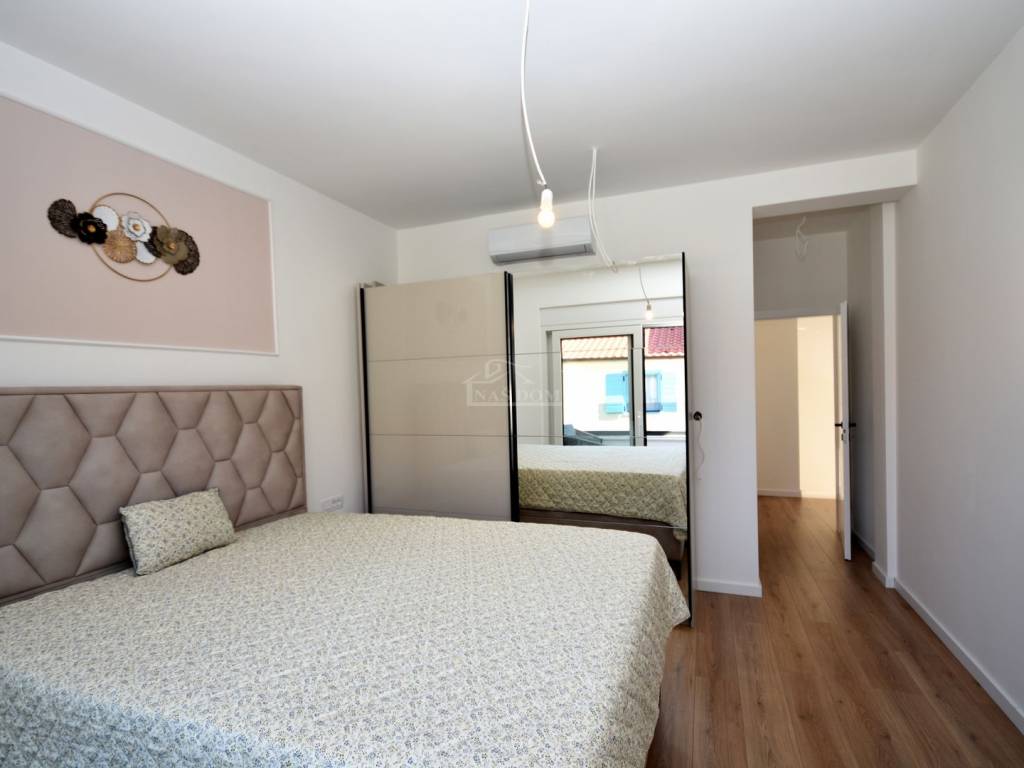 Vodice, Srima- **NOVOGRADNJA** prodaje se kompletno namještena i opremljena dvojna kuća modernog izgleda i ima tri etaže: prizemlje+kat +II.kat. Kuća je sagrađena 2025 godine kvalitetnim materijalima i opremljena prema posljednjim standardima gradnje. Od opreme izdvajamo: stiropor fasada 10 cm, PVC stolarija s roletama, klizne stijene, kvalitetne keramičke pločice, moderne kupaonske sanitarije, vodeno podno grijanje na struju +toplinska pumpa, predinstalacija za solarne panele, internet/tv instalacije u spavaćim sobama i dnevnom boravku, klime u spavaćim sobama i dnevnom boravku, laminati u spavaćim sobama, parking popločan opločnikom, postavljena umjetna trava u vrtu..