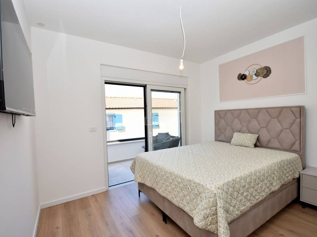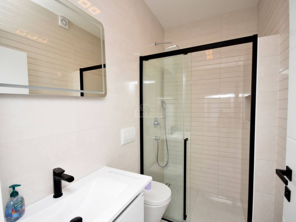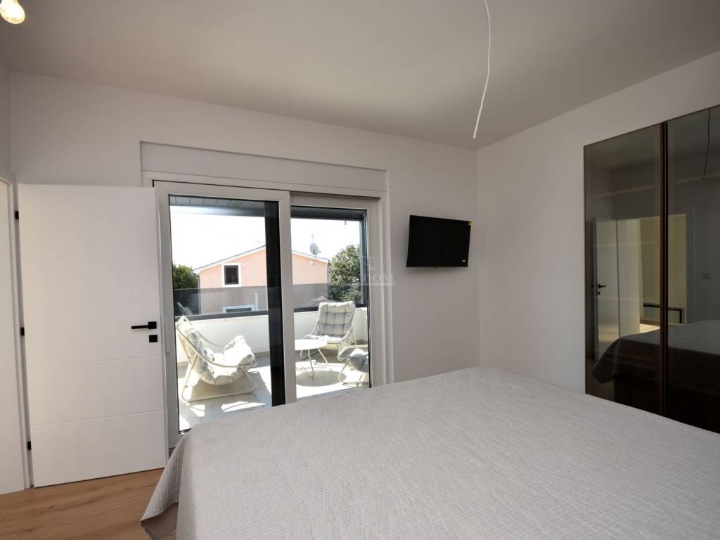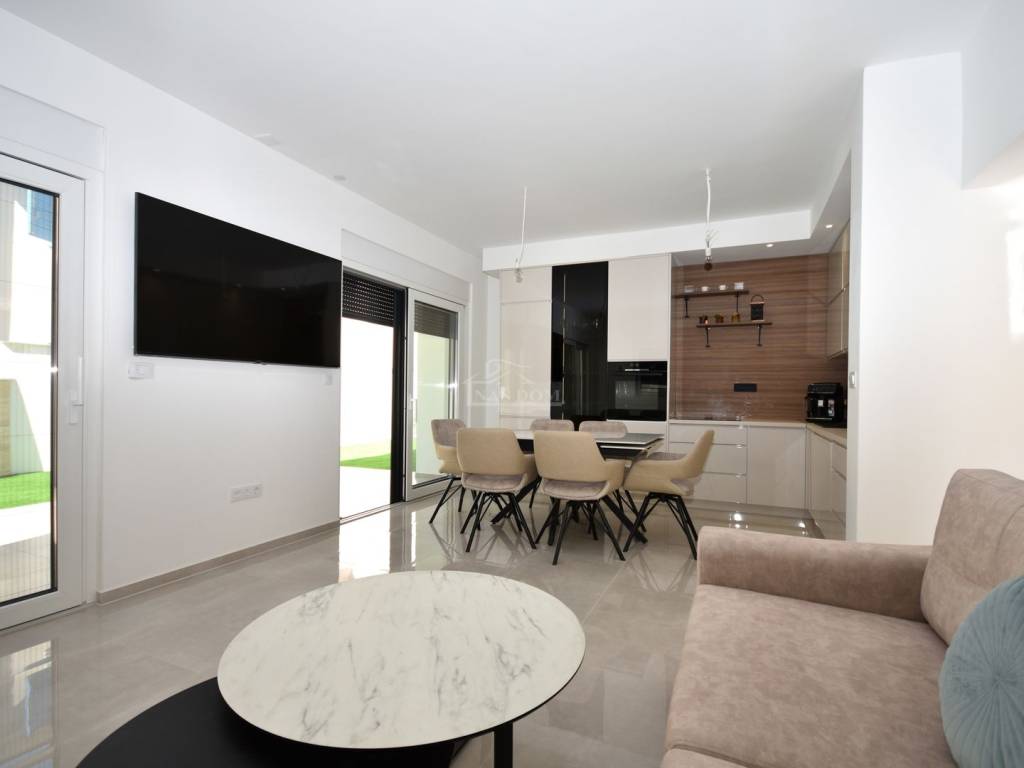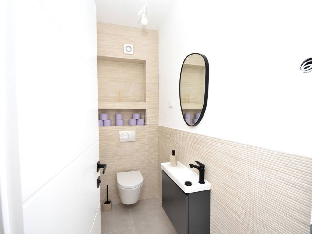 Vodice, Srima- **NOVOGRADNJA** prodaje se kompletno namještena i opremljena dvojna kuća modernog izgleda i ima tri etaže: prizemlje+kat +II.kat. Kuća je sagrađena 2025 godine kvalitetnim materijalima i opremljena prema posljednjim standardima gradnje. Od opreme izdvajamo: stiropor fasada 10 cm, PVC stolarija s roletama, klizne stijene, kvalitetne keramičke pločice, moderne kupaonske sanitarije, vodeno podno grijanje na struju +toplinska pumpa, predinstalacija za solarne panele, internet/tv instalacije u spavaćim sobama i dnevnom boravku, klime u spavaćim sobama i dnevnom boravku, laminati u spavaćim sobama, parking popločan opločnikom, postavljena umjetna trava u vrtu..