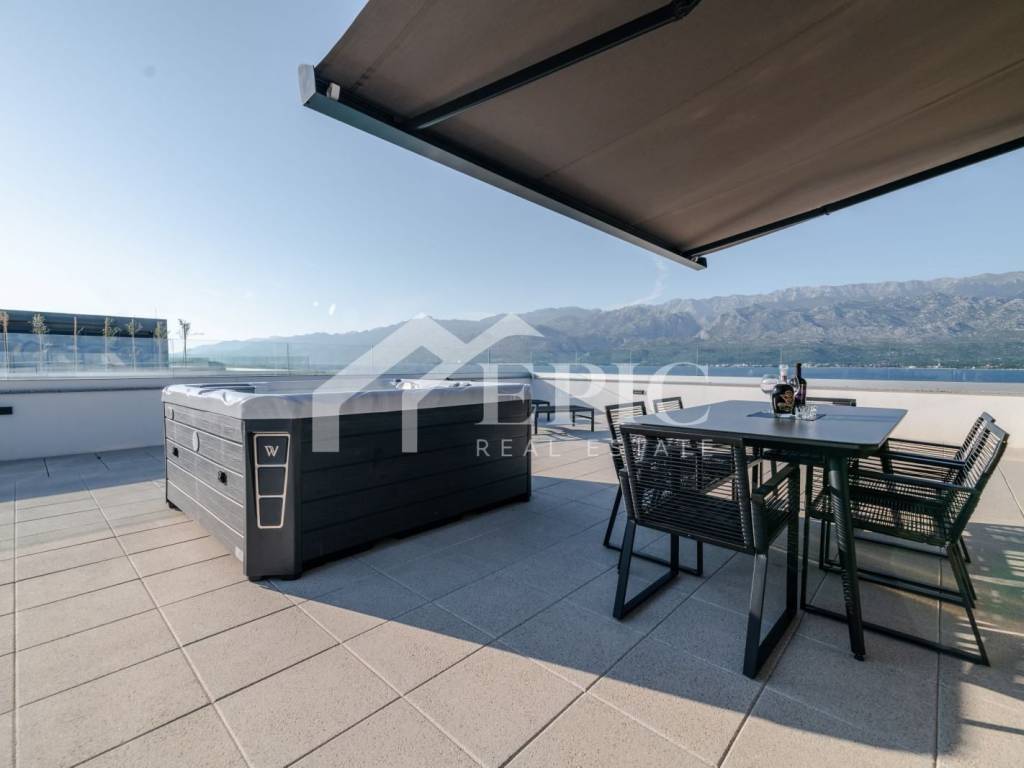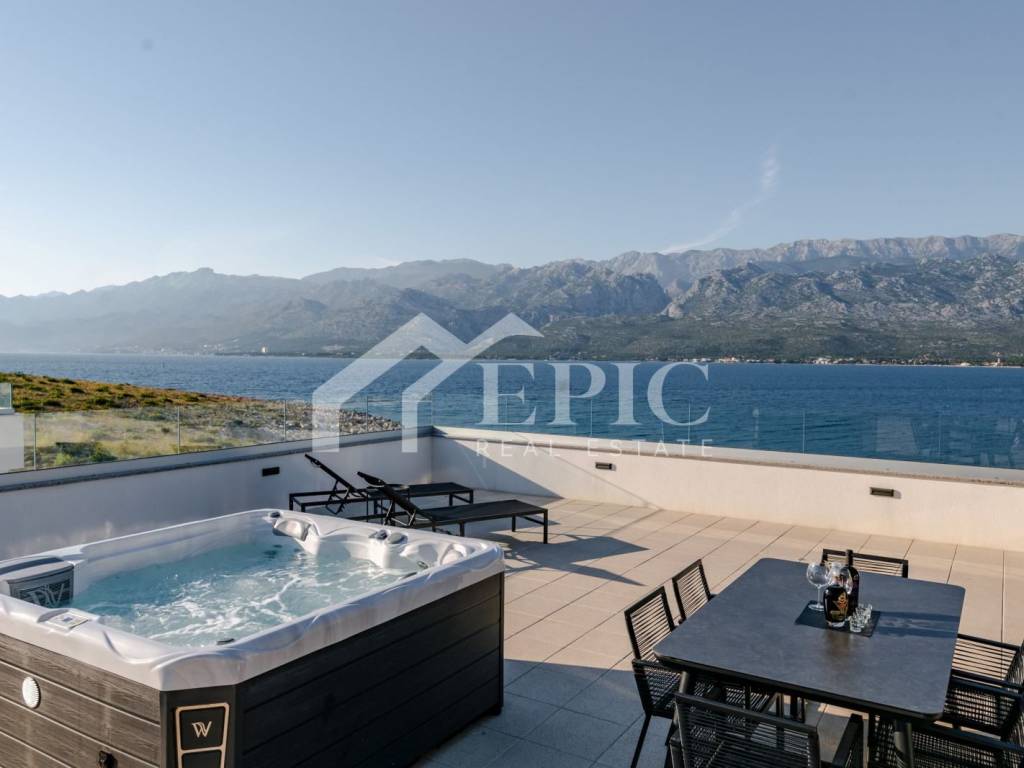 Prodaje se luksuzan, kompletno namješten penthouse apartman u vrlo kvalitetnoj novogradnji na mirnoj lokaciji u mjestu Vinjerac, općina Posedarje. Nalazi se samo 15m od mora, te ima direktan prilaz moru. Smješten je na drugom katu zgrade s ukupno 6 stanova.