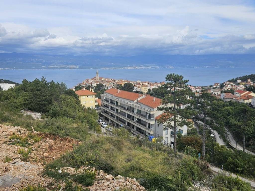 Otok Krk, Vrbnik, prodaja apartmana površine 69,30 m2, na drugom katu nove apartmanske zgrade s pogledom na more, na mirnoj lokaciji, 500 m od plaže. Apartman se sastoji od dvije spavaće sobe, dnevne sobe s kuhinjom i blagovaonom, dvije kupaonice, hodnika, natkrivene terase i dodatnog studio apartmana površine 19,80 m2 u prizemlju zgrade s uređenom okućnicom površine 35 m2. Kvalitetna gradnja i oprema, vrhunske sanitarije i podne obloge, podno grijanje, klimatizacija, protuprovalna vrata, parkirno mjesto.