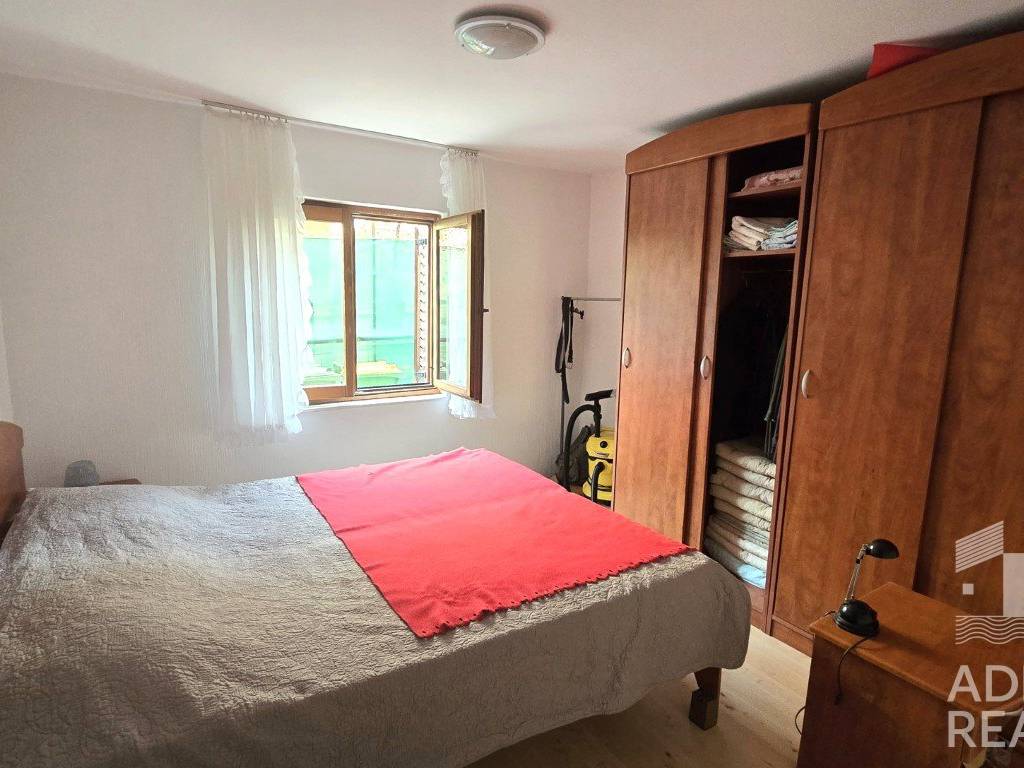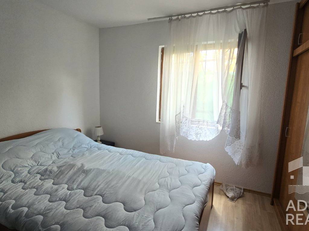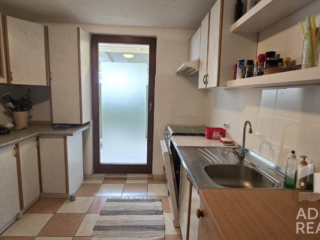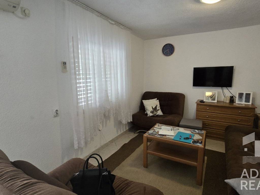 Apartman se sastoji od ulaznog prostora, dnevnog boravka,kuhinje, dvije spavaće sobe i kupaonice. S prednje strane apartmana nalazi se terasa pogodna za jutarnji boravak ili obroke na otvorenom, dok stražnja terasa pruža dodatni prostor za opuštanje u sjeni. Uz apartman dolazi i jedno parkirno mjesto, a prodaje se namješten, što novom vlasniku omogućava jednostavno i brzo useljenje bez većih početnih ulaganja.