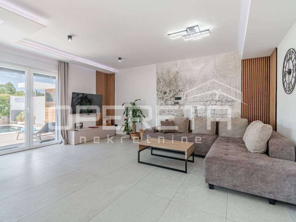 Kuća se prostire na 160 m² unutrašnjeg prostora, s okućnicom od oko 250 m² koja osigurava privatnost i prostor za opuštanje. Centralni dio okućnice zauzima privatni bazen od 24 m2, idealan za osvježenje tijekom toplih dana, smješten ispred kuće.