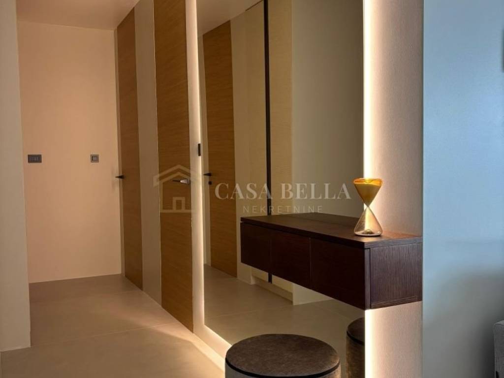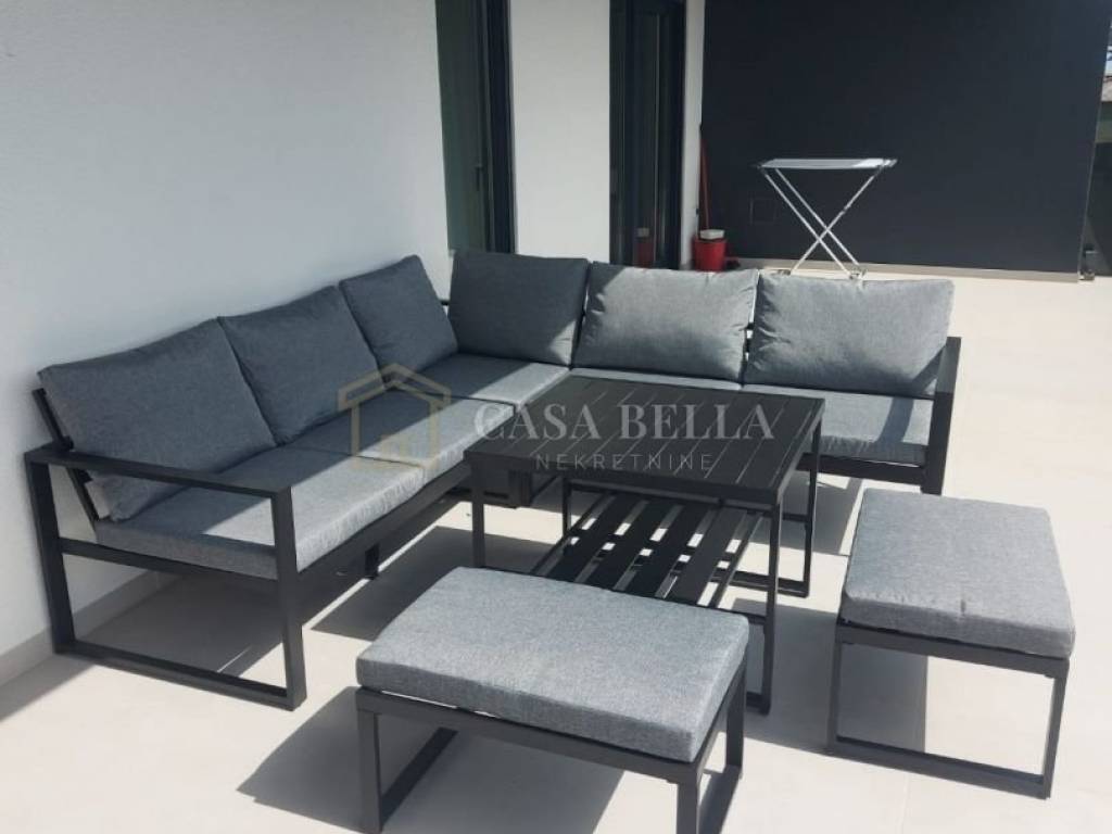 Oprema stana uključuje podno grijanje u cijelom stanu, visokoučinkovitu toplotnu pumpu Daikin Altherma High Temperature 70°C – R32, idealnu za niske vanjske temperature, te Daikin klima uređaje. Cijeli prostor je opremljen modernim, po mjeri rađenim namještajem. Sigurnost dodatno osiguravaju pokretna kapija, interfoni na kapiji i ulazu, kao i video nadzor parkinga.
