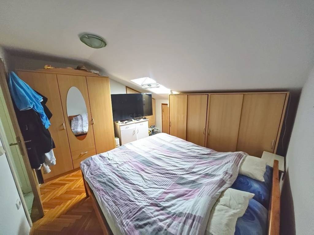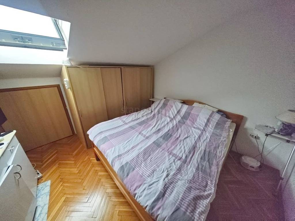 Prema vrsti nekretnine, ovo je jednoetažni apartman srednje veličine. U zgradi vrlo dobre gradnje, apartman je pozicioniran u visokom potkrovlju. Površina ovog apartmana iznosi ukupno 56 m2. Na navedenoj površini se nalaze dnevni boravak i kuhinja s blagovaonicom, spavaća soba, kupaonica i lođa. Nekretnina očuvane unutrašnjosti je opremljena setom vrlo dobre tehničke opreme i kvalitetnim komadima namještaja.