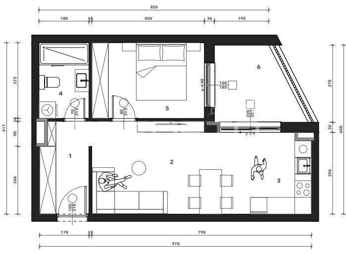 Sastoji se od ulaznog hodnika, kuhinje s blagovaonicom i dnevnog boravka, spavaće sobe, kupaonice i loggie. Uz stan je potrebno kupiti garažno mjesto i spremište.