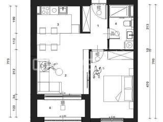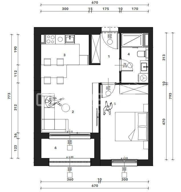 Sastoji se od ulaznog hodnika, kuhinje s blagovaonicom i dnevnog boravka, spavaće sobe, kupaonice i loggie. Uz stan je potrebno kupiti garažno mjesto i spremište.