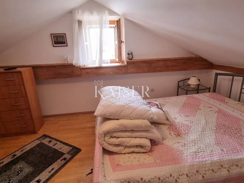 U potkrovlje se ide stepenicama na izvlačenje, te se u potkrovlju nalazi velika prostrana spavaća soba od 19,5 m2 gdje se nalaze dva kreveta. Iz potkrovlja se kroz prozor proteže predivan pogled na more i Omišalj.