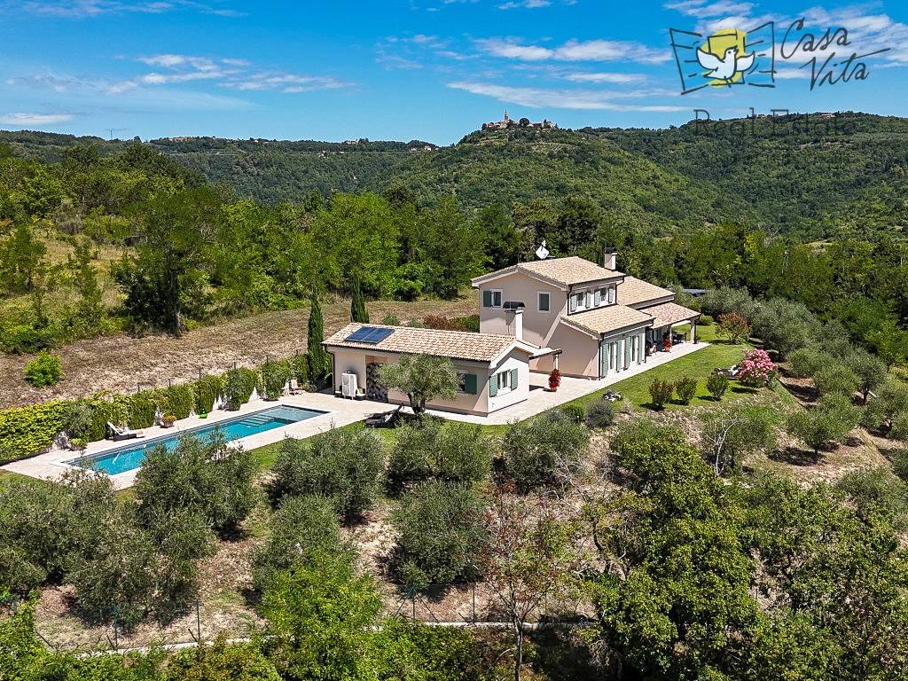 Predivna kamena vila izgrađena 2018.g., nudi jedan od najljepših panoramskih pogleda na istarske šume, brežuljke, vinograde, te gradove Grožnjan i Motovun.