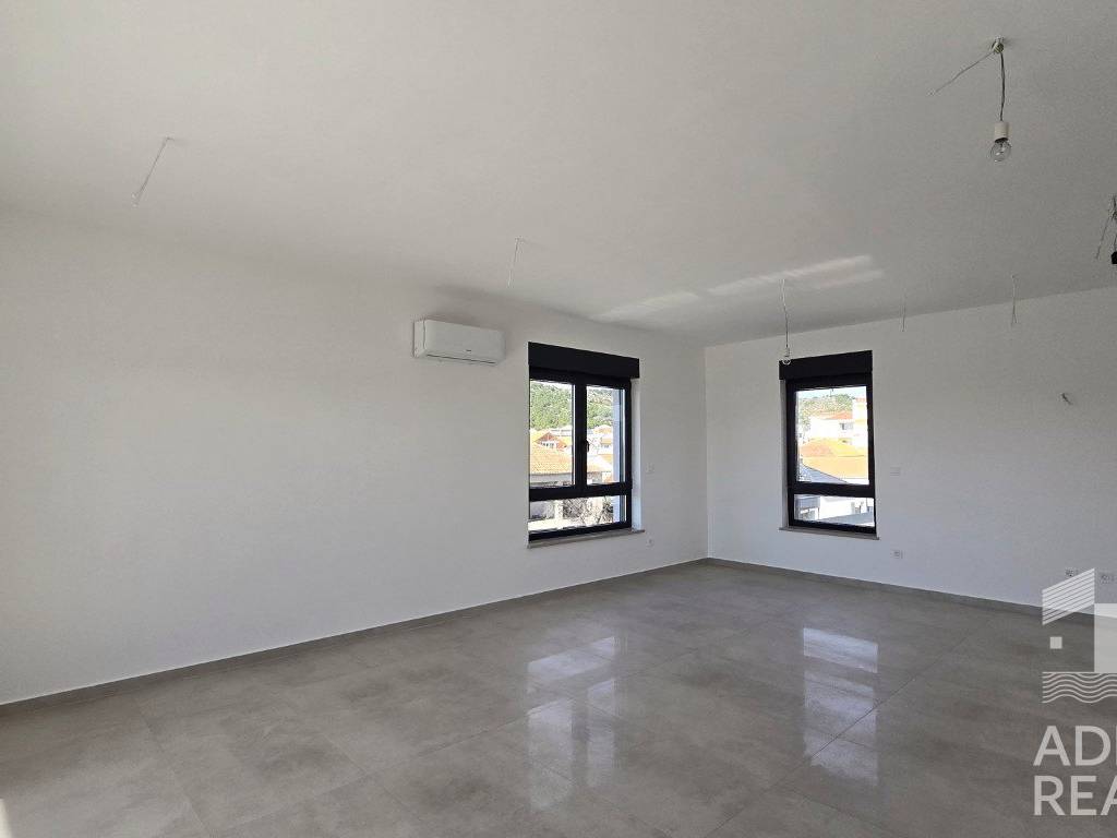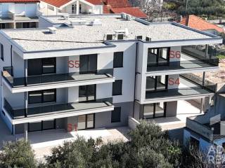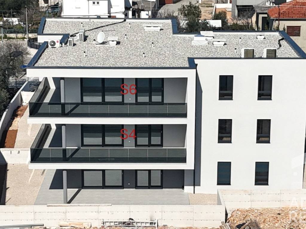 Na prodaju je moderan dvosobni apartman S5 smješten na drugom katu zgrade s ukupno šest stambenih jedinica u Tribunju. Neto površina unutarnjeg prostora iznosi 82,13 m2, a sastoji se od ulaza, hodnika, kuhinje, blagovaonice i dnevnog boravka otvorenog koncepta s izlazom na prostranu natkrivenu terasu površine 32,02 m2, idealnu za uživanje na otvorenom. U ostatku apartmana nalaze se dvije spavaće sobe, kupaonica, dodatni WC te praonica rublja.