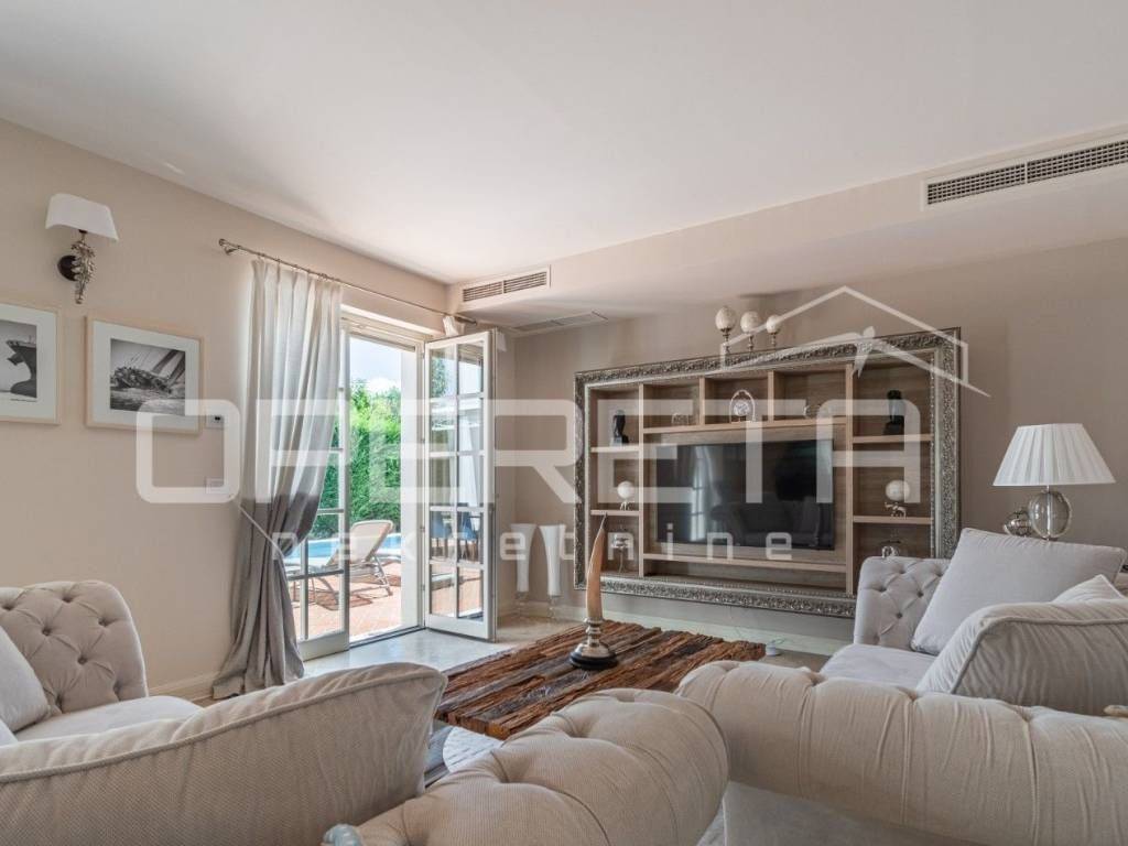 U prizemlju vile dočekuje vas elegantan ulazni hodnik koji vodi u impresivan open space koncept. Ovdje se savršeno spajaju vrhunski opremljena kuhinja s modernim Miele aparatima, prostrana blagovaonica i svijetao dnevni boravak. Iz dnevnog boravka omogućen je direktan izlaz na prostrano sunčalište i predivno uređen vrt, gdje dominira osvježavajući bazen dimenzija 8x4 metra, idealan za opuštanje i uživanje u toplim danima.