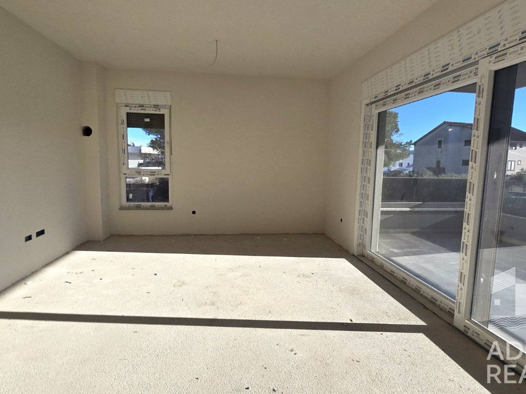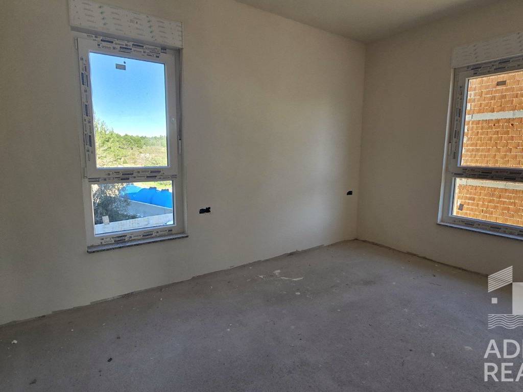 Na prodaju je trosoban apartman smješten na prvom katu moderne stambene zgrade u Srimi, u blizini Vodica. Zgrada se sastoji od ukupno devet stambenih jedinica raspoređenih kroz tri etaže i ističe se suvremenim dizajnom te kvalitetnom gradnjom.