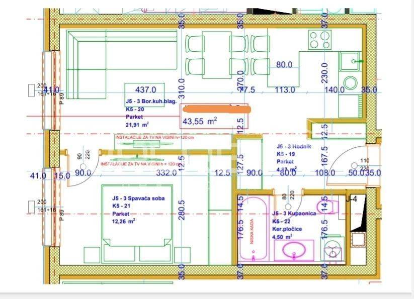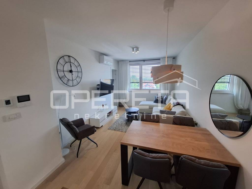 boravka, kuhinje i blagovaone zatvorenog dijela površine 43,54 m2, garažnog parkirnog mjesta od 16m2 i spremišta 6 m2. Grijanje dizalice topline podna grijanja- struja. Odvojene i male režije (100 e/m). Odlična lokacija 200 m od tramvaja i svih sadržaja za život! Prodaje se opremljen i namješten kako je vidljivo na slikama (većina uređaja ima garanciju)