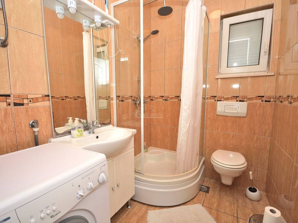Stan je južno orijentiran , dosta komforan i opremljen klima uređajem grijanje/hlađenje i kaminom na drva što olakšava boravak tokom čitave godine. Stan je u potpunosti namješten, namještaj je uključen u cijenu stana te ima jedno parkirno mjesto u dvorištu zgrade.