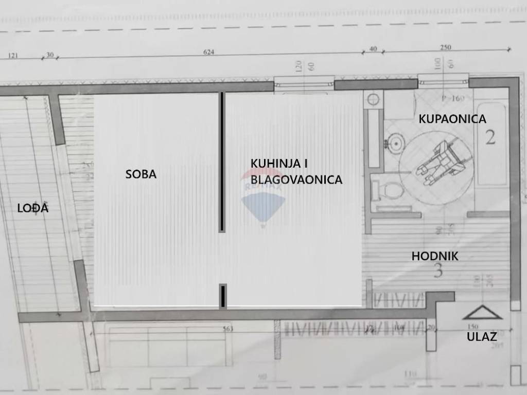 Predmetni stan sastoji se od ulaznog hodnika, kuhinje, sobe s izlazom na lođu, i kupaonice.