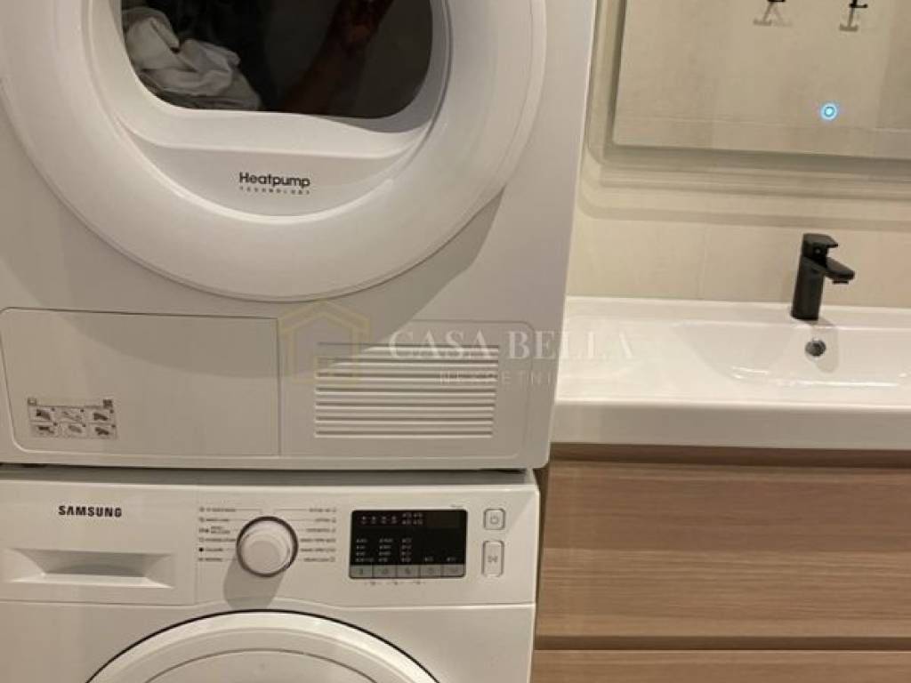 Kupaonica s WCom, walk-in tušem, širokim lavandinom. Samsung veš mašina i sušilica.