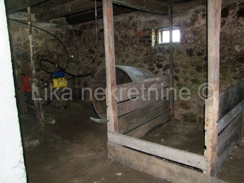 GORNJE VRHOVINE ( Vrhovine) - samostojeća obiteljska kuća 9x9,6m, visoka prizemnica s dvorišnim zgradama, voćnjakom (šljive, jabuke, orasi, trešnje) ispred i iza kuće. Kuća ima dva prilaza. Kuća je u gornjem dijelu useljiva i namještena te se sastoji od hodnika, kuhinje, dnevnog boravka, kupaonice s wc-om, dvije spavaće sobe. Prizemlje kuće ima zaseban ulaz, prizemlje je neizređeno, nalazi se u suterenu od jedne prostorije ispod cijele kuće ( ostava zimnice). Izmjenjena pvc stolarija. U dvorištu je ljetna kuhinja 5,5x3,5m sa pušnicom za meso, a nasuprot dvorišta je gospodarski objekt - štala, dimenzija 7x10,5m u čijem se prizemlju nalazi velika garaža, a u drugoj polovici je staja za blago - smještaj stoke. Iznad garaže i staje nalazi se prostor za skladištenje sijena. Između kuće i ljetne kuhinje je šterna ( bunar za kišnicu). Kuća je useljiva, vlasništvo uredno, bez tereta, svi objekti ucrtani. Okućnica 2.942 m2 s mogućnosti otkupa susjednih čestica. Struja, gradski vodovod, septička jama...