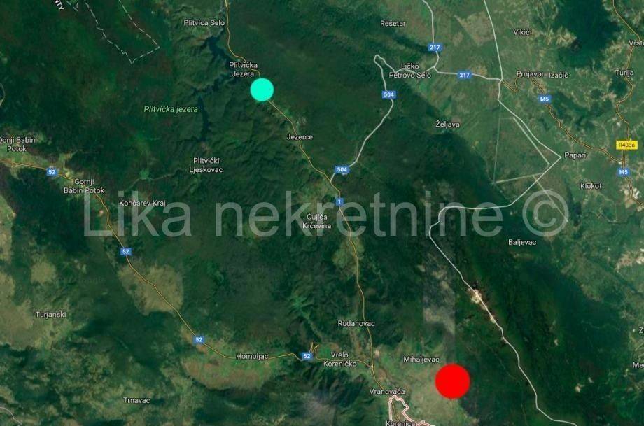 Zemljište se nalazi na samo 15 minuta vožnje od ulaza na Plitvička jezera. Sastoji se od više parcela, koje su u jednom komadu, u sveukupnoj površini od 53.000 m2. Točna lokacija je u podnožju Plješevice kod Korenice - idealno za gradnju turističkog resorta u prirodi. Prednost zemljišta je blizina Plitvičkih jezera, a opet je izvan Nacionalnog parka što pruža mogućnosti puno veće izgradnje, te ostavlja investitoru otvorene mogućnosti za bilo kakve turističke ideje, što u samom Nacionalnom parku nije moguće zbog uvjeta prostornog plana.Struja i voda su dostupni - treba zatražiti priključke. Do zemljišta se lako dolazi automobilom jer postoji put.