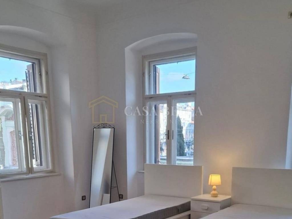 CASA BELLA nekretnine iz ponude izdvaja prvom katu zgrade u centru grada iznajmljuje se stan površine 55 m². Stan se sastoji od jedne spavaće sobe, dnevnog boravka, kuhinje s blagovaonicom i kupaonice. Opremljen je klimom.