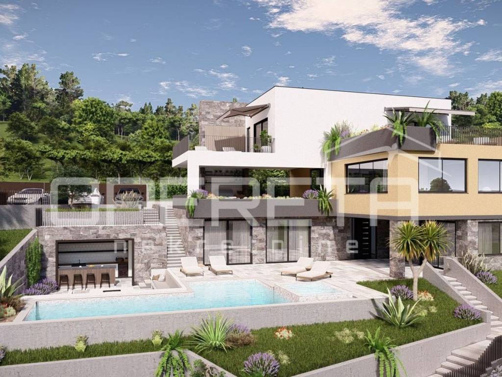 Na prodaju je moderna vila u izgradnji, smještena na atraktivnoj i mirnoj lokaciji u Vrbniku, jednom od najposebnijih i najtraženijih mjesta na otoku Krku. Ova luksuzna nekretnina nudi visoku razinu privatnosti, prekrasan pogled i vrhunski komfor, a nalazi se u neposrednoj blizini mora, prirode i slikovitog starog grada.