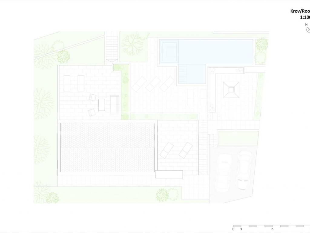 U prizemlju se nalazi ulazni prostor koji vodi u udoban lounge, centralni hodnik te tri prostrane spavaće sobe, svaka sa svojom vlastitom kupaonicom. Posebnu atmosferu prizemlju daje ekskluzivni unutarnji bar, koji se savršeno nadovezuje na natkriveni izlaz na veliku terasu s lounge zonom. Iz prizemlja se izlazi na prostrano, privatno dvorište koje krasi impozantan bazen i jacuzzi – idealno mjesto za opuštanje, sunčanje ili večernja druženja pod zvijezdama.